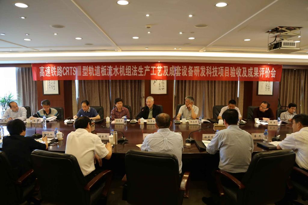与会专家学者对该科研项目给予了高度评价,认为该项目实现了自动化流水节拍生产,跟传统的台座法生产工艺相比,不仅有效解决了预应力双向单根同步、缓慢均匀张拉和同步放张难题,而且解决了在线快速检测、快速同步顶升脱模、无阻隔分区和连续循环蒸汽养护等问题;明显提升了产品质量和生产效率,大幅降低了劳动强度,节约了土地资源、人工和基建投入;实现了高铁轨道板生产的“标准化、工厂化、信息化”。专家一致认为此科研成果为国内首创,国际领先,值得广泛推广运用。