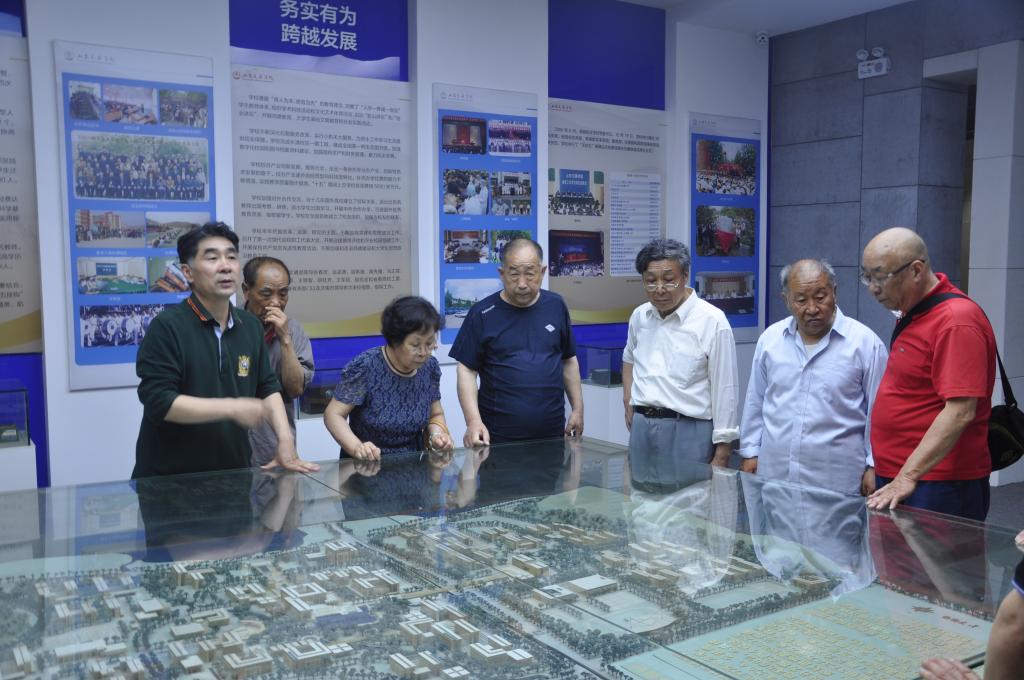 负责组织活动的校友张善斌非常感谢学校的盛情和精心安排,并向学校领导一一介绍了来访校友,介绍了他们的班级情况和在校学习期间的美好回忆。他讲到,由于同学们年龄偏高,最小的70岁,最大已73岁,再次回到母校是心中最大的愿望。此次活动筹划了很长时间,大家都很期待回返母校,同学们许多都是一别五十年,半个世纪都未能谋面,这次的聚会终于圆了大家的梦。