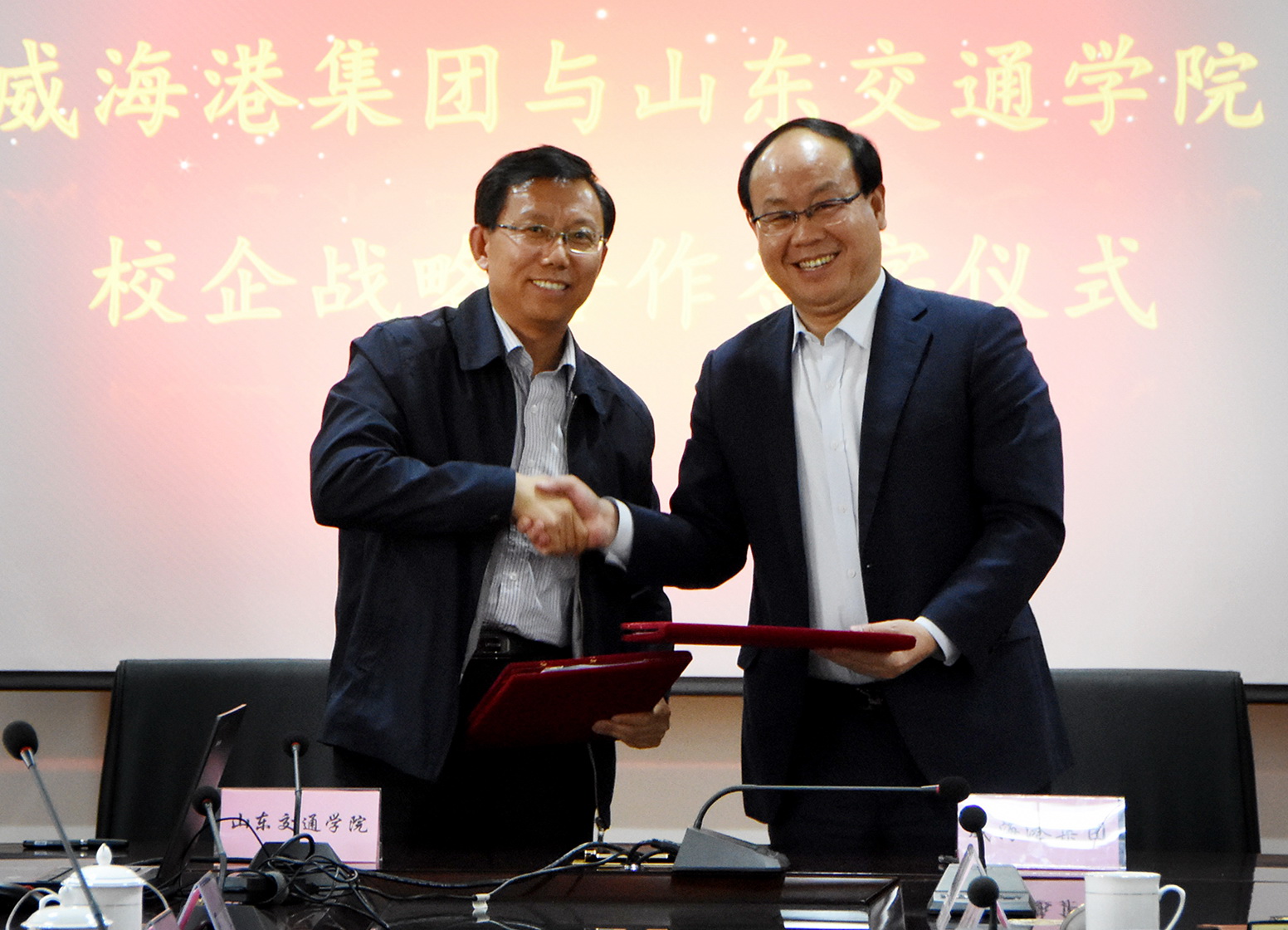 5月8日,我校威海校区与威海港集团有限公司签署校企战略合作协议。学校副院长姜华平,威海港集团党委书记、董事长车路明出席签字仪式。