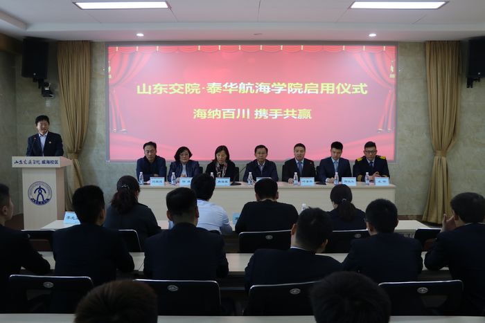 近日,我校产教融合平台“山东交院·泰华航海学院”启用仪式在威海校区举行。副院长姜华平、泰华船舶管理有限公司总经理叶圣兵参加了仪式。仪式由航海学院院长李光正主持。