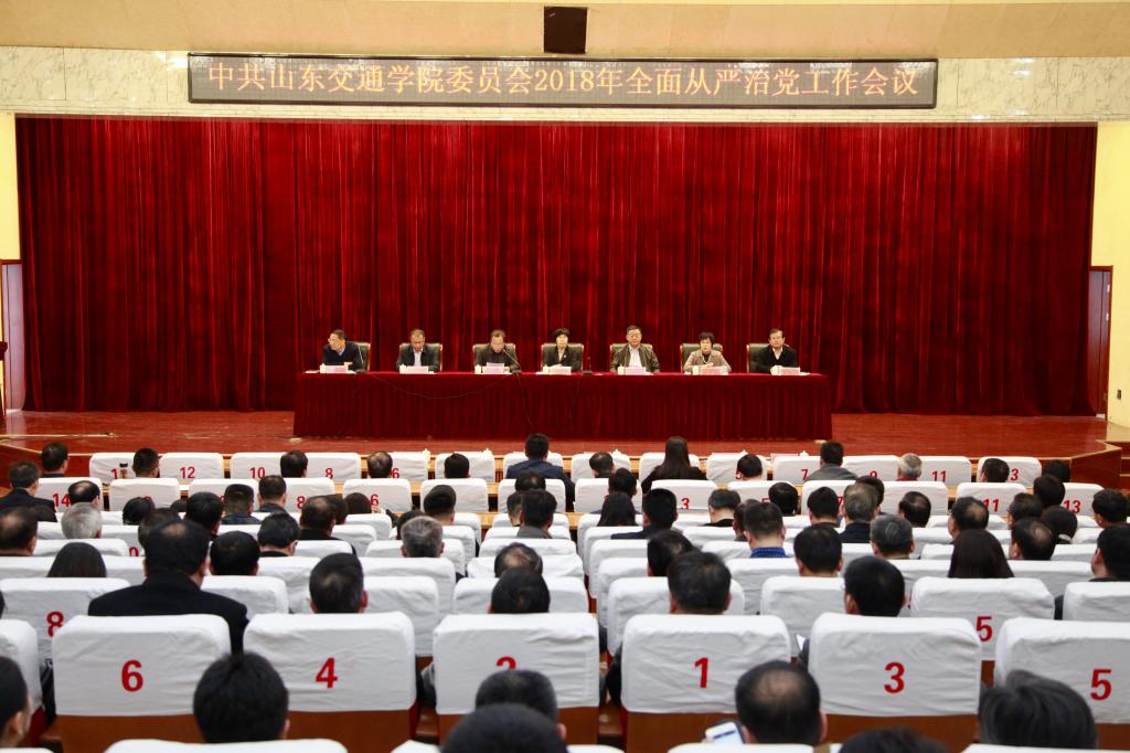 孙秀丽作学校全面从严治党工作报告。报告中,她系统总结回顾了学校2017年全面从严治党工作,对学校党风廉政建设和反腐败工作形势进行了分析研判,并从全面从严治党的高度部署2018年重点任务,提出全面从严治党的工作要求。她指出,2018年学校全面从严治党工作以习近平新时代中国特色社会主义思想为指导,深入学习贯彻党的十九大精神,全面落实习近平总书记视察山东重要讲话、重要指示批示精神,牢固树立政治意识、大局意识、核心意识、看齐意识,坚决维护习近平总书记在党中央和全党的核心地位,坚决维护以习近平同志为核心的党中央权威和集中统一领导。坚持和加强党的全面领导,坚持党要管党、全面从严治党,全面推进党的政治、思想、组织、作风、纪律建设,把制度建设贯穿其中,深入推进反腐败斗争。坚持把抓好党建作为最大政绩,严格落实全面从严治党主体责任,强化问题导向,细化实化措施,着力解决党的领导、党的建设和全面从严治党中的突出问题,为学校“目标管理年”的顺利实施和全面打赢“1245”攻坚战营造风清气正的政治生态。她从七个方面就贯彻落实全面从严治党提出要求:一是要从严抓管党,持续推进全面从严治党向基层延伸;二是要从严抓思想,把学习贯彻习近平新时代中国特色社会主义思想不断引向深入;三是要从严抓执纪,真正把纪律立起来、严起来;四是要从严抓干部,打造高素质干部队伍;五是要从严抓作风,持之以恒正风肃纪;六是要从严抓反腐,加大反腐倡廉宣传教育力度;七是要采取有效措施,切实推进全面从严治党责任落实。她强调,全校师生员工要紧密团结在以习近平同志为核心的党中央周围,不忘初心、牢记使命,坚定不移推进全面从严治党向纵深发展,在发展中谋改革、在改革中求发展,切实将全面从严治党转变为学校建设、改革和发展的实际成果,为全面打赢“1245”攻坚战提供坚强保障。