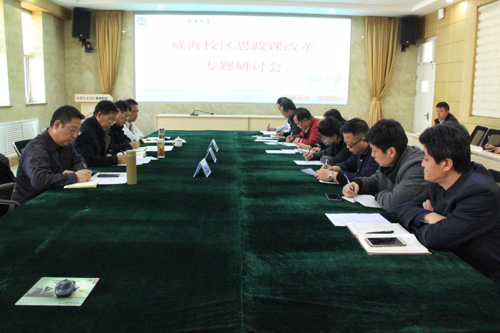 为贯彻落实《关于加强和改进新形势下高校思想政治工作的意见》,创新思政教师队伍建设,加快思政课程改革,全面提升威海校区思想政治工作水平,3月22日,威海校区在多功能厅召开思政课改革专题研讨会,副院长姜华平主持会议并讲话。
