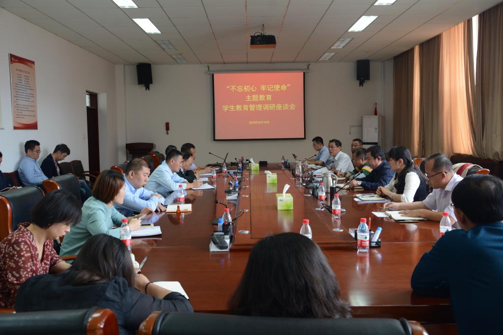 9月19日上午,学校在长清校区办公楼第一会议室召开“不忘初心、牢记使命”主题教育学生教育管理调研座谈会。党委副书记唐勇出席并主持会议。党委学生工作部(处)、招生就业处、团委及各二级学院学生工作负责人参加会议。