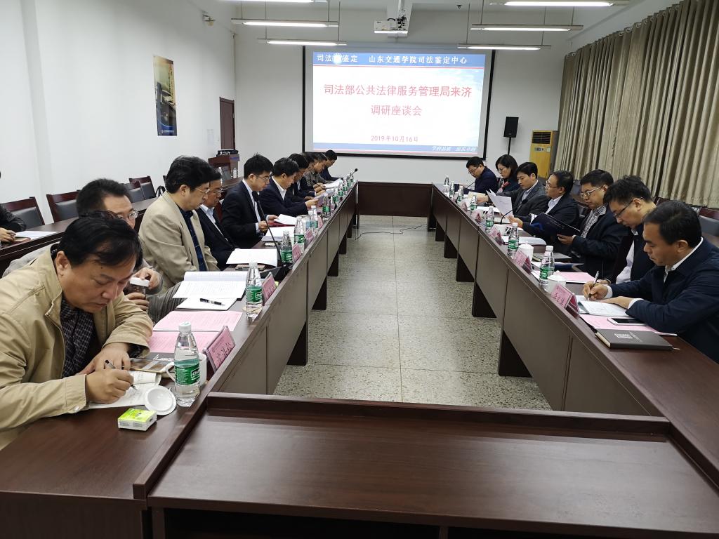 10月16日,司法部公共法律服务管理局副局长舒国华、综合处处长张红生,司法鉴定管理处处长张效礼一行,在山东省司法厅副厅长、省司法鉴定协会党委书记马灵喜、济南市政府副秘书长相振谨、市司法局局长谢圣仁、副局长陈其军等陪同下來我校司法鉴定中心调研。院长陈松岩在无影山校区接见了调研组,并陪同调研组参观了我校司法鉴定中心业务受理大厅、各专业实验室及各科室办公区。