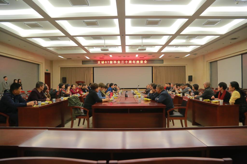 文秘1987级校友在学术报告厅会议室举行了“不忘学习初心,牢记母校师恩”主题座谈会。唐勇代表学校欢迎校友的到来,他指出,学校目前正在扎实开展“不忘初心、牢记使命”主题教育,广大校友荣归母校,见证学校30年发展成就,为学校主题教育增添了浓墨一笔。他希望,校友们继续关注和支持学校的发展,助力学校申办硕士点、实现交大梦。