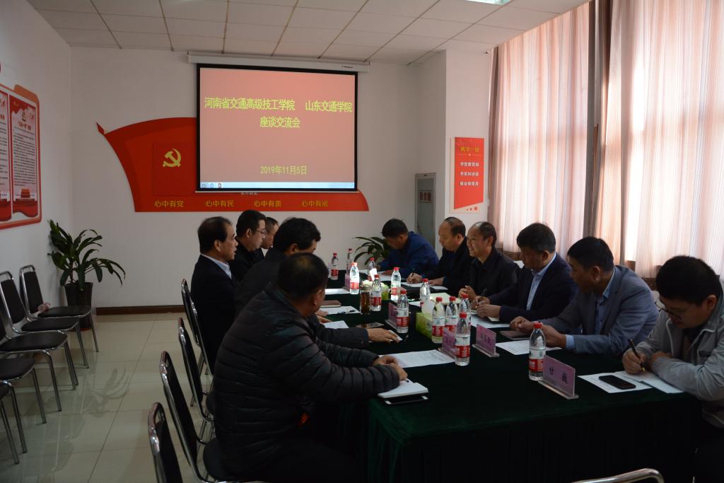 11月5日上午,河南省交通高级技工学校副校长李国文,在党政办公室、总务处、安保处和学工处负责人的陪同下来我校调研。副院长孟庆旭在长清校区办公楼614会议室与来访客人座谈交流。