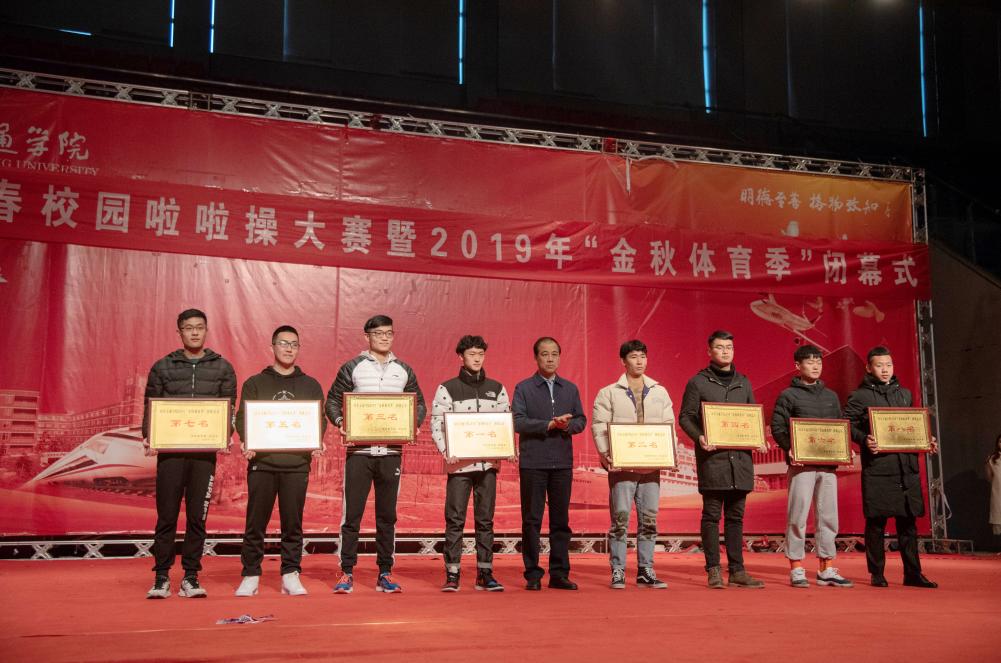 闭幕式上,孟庆旭在总结讲话中充分肯定了“金秋体育季”系列活动所取得的成绩,并指出,学校举办金秋体育季是对体育教育工作、学生体育素质和精神风貌的一次检阅,各种阳光体育活动演绎了学校的底蕴情怀和勇于创新、追求卓越的时代担当,彰显了我校“明德至善 格物致知”校训,突出体现了“人人参与体育运动、共同提高身体素质”的学校体育教育宗旨,更展现了交院师生团结协作、努力拼搏、追求卓越的精神品质与和崇健康、乐运动的校园体育文化氛围。体育教学部主任陈晋宣读了获奖名单,交通土建工程学院(147.5分)、汽车工程学院(142分)、国际教育学院(133分)、工程机械学院(127分)、轨道交通学院(126分)、交通与物流工程学院(121分)、信息科学与电气工程学院(113.5分)以及航空学院(107分)获得前八名,国际教育学院、工程机械学院获得优秀组织奖,轨道交通学院、信息科学与电气工程学院获得精神文明奖。