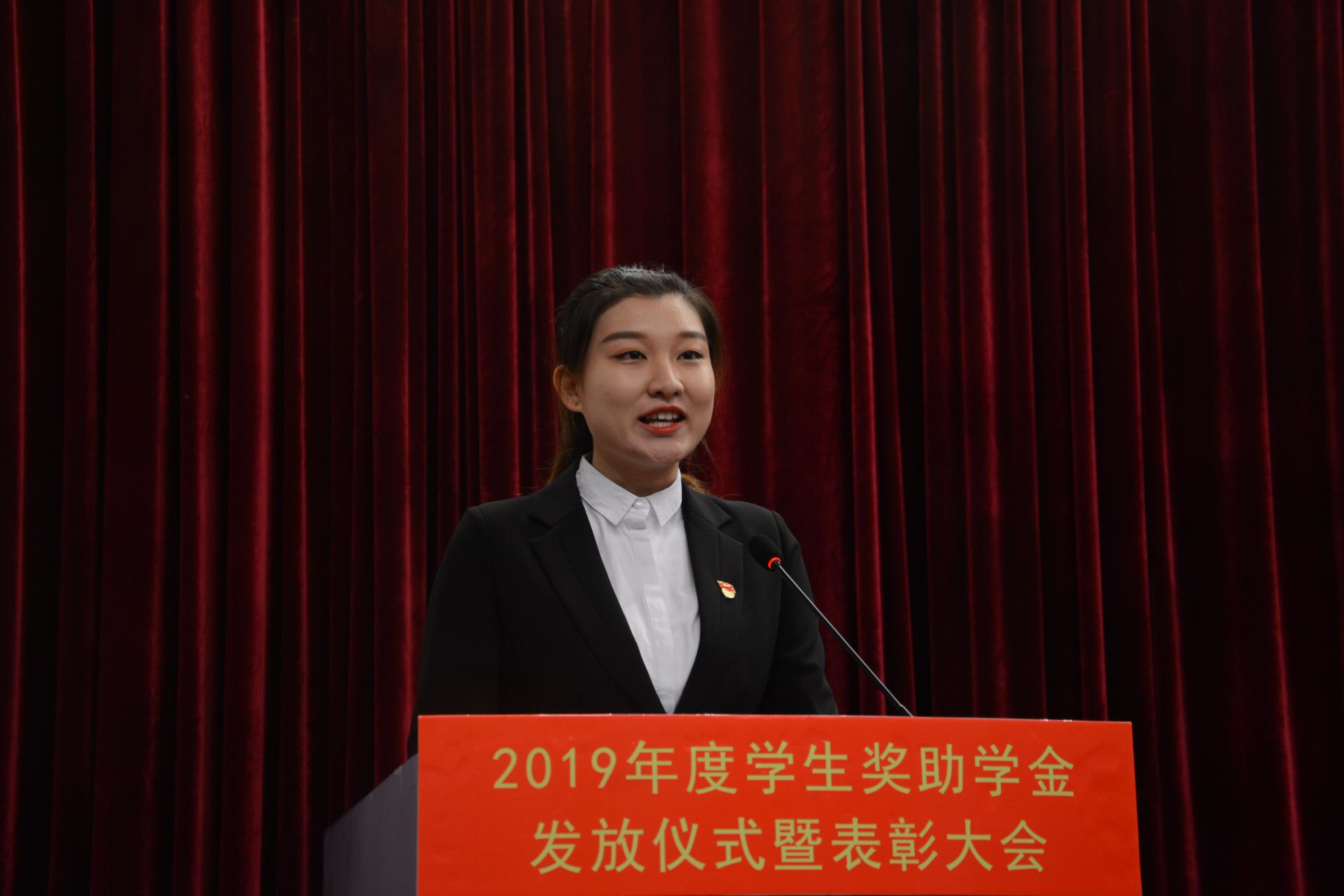 机械161班陈伟、航电172班李怡恒和物流162班于小涵分别代表校长奖学金获得者、国家助学金获得者和国家奖学金获得者发言。
