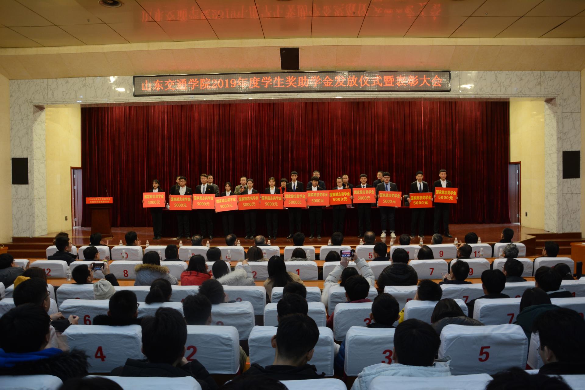 12月30日下午,学校在长清校区学术报告厅举行2019年度学生奖助学金发放仪式暨表彰大会。党委书记孙秀丽,党委副书记、院长陈松岩,党委副书记唐勇,副院长李贞涛、孔祥云、纪委书记范玉斌、副院长姜华平、孟庆旭出席会议。会议由唐勇主持。