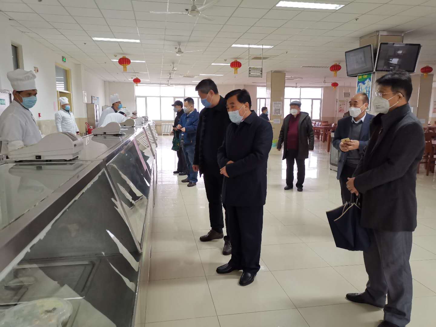 2月24日中午,党委书记王焕斌,党委副书记、院长陈松岩前往长清校区教工餐厅现场检查指导疫情防控工作,着重就食品卫生安全监管、伙食保障供应、饭菜质量等情况进行了实地检查和调研。