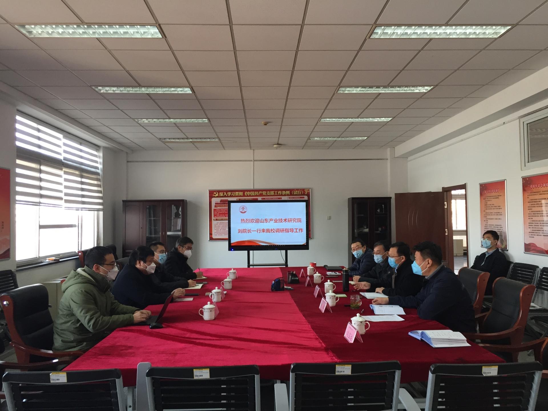 刘孟德充分肯定了我校在产学研融合方面的成绩,介绍了山东产业技术研究院运行模式,希望双方共同努力,落实落细共建工作,在科研创新平台建设、技术转移转化、共同申请重大项目等多方面开展务实合作,共同推动高校、政府、新型研发机构、企业协同创新,抢抓新机遇,实现新突破。