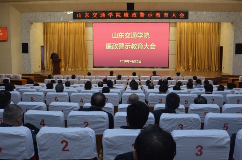 4月23日,学校在长清校区学术报告厅开展廉政警示教育活动。学校领导王焕斌、陈松岩、唐勇、孔祥云、姜华平,全体中层干部参加了活动。活动由纪委书记贾洪江主持。