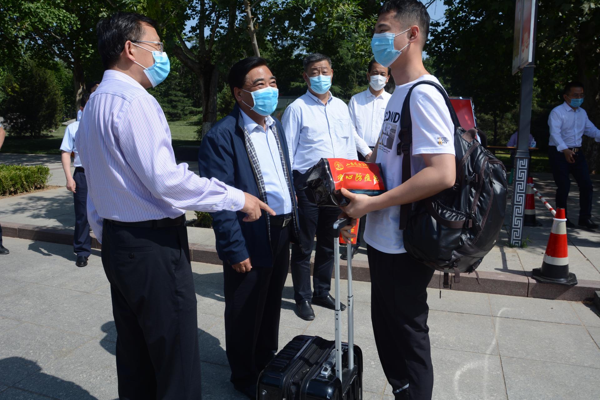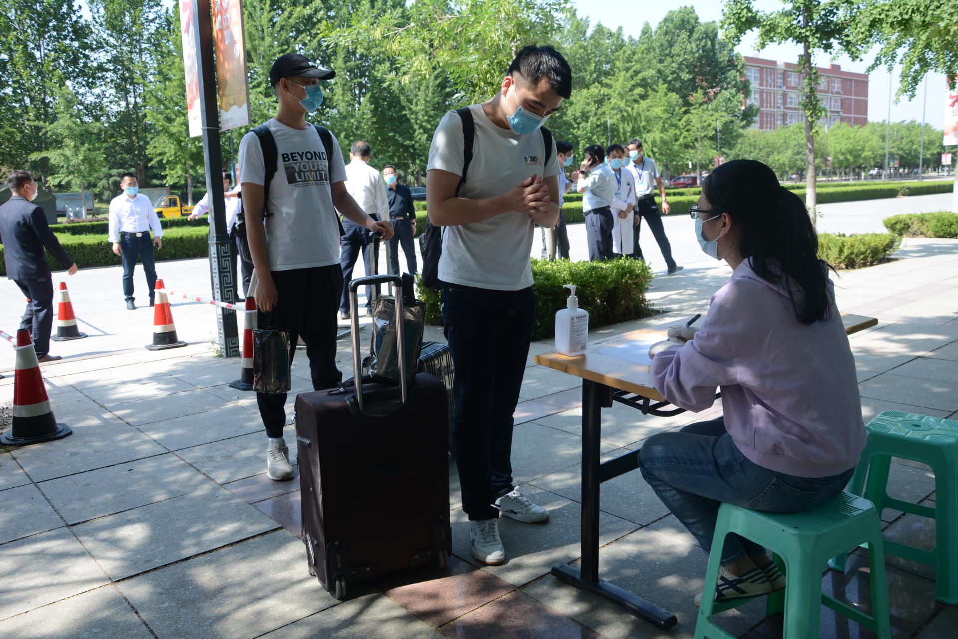 按照省委、省政府和教育主管部门要求,根据“错时错峰开学”原则,5月20日,我校迎来了2020年春季学期首批毕业年级研究生返校。党委书记王焕斌,党委副书记、院长陈松岩,副院长姜华平、孟庆旭来到长清校区东大门口检查报到工作,看望返校学生,向大家顺利返校表示欢迎,并向返校学生赠送含有一次性医用口罩、消毒湿巾、消毒凝胶等在内的“防疫健康包”。
