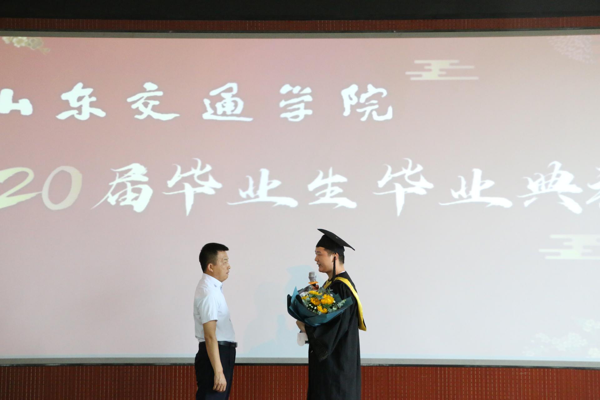陈松岩为威海校区2020届毕业生代表逐一正冠、拨穗,颁授毕业证和学位证书并合影留念。他在毕业典礼致辞中希望同学们,一要学会担当,勇挑时代重任,肩负国家重托,勤奋工作、无私奉献;二要努力奋斗,始终弘扬“爱校 敬业 务实 创新”的交院人精神,不忘初心、砥砺奋进;三要勇于创新,始终保持敏锐的洞察力,敢为人先、大胆探索,争做行业的先行者。