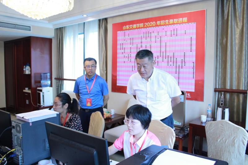 陈松岩慰问了招生录取一线的工作人员,认真查看了提前批次各专业的录取分数段,就2020年招生录取工作中出现的新变化、新特点与工作人员进行了深入交流。他指出,在疫情防控常态化下,要统筹做好考试招生工作和疫情防控工作。今年是2020年山东新高考措施落地第一年,要吃透新规则,及时总结招生录取工作经验,了解目前生源状况存在的问题,确定今后招生工作的方向和重点。