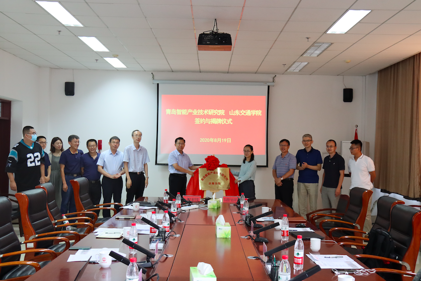交流会结束后,姜华平和王晓代表双方签署了《山东交通学院 青岛智能产业技术研究院战略合作协议》。双方成立“青岛智能产业技术研究院济南分院”并共同为分院揭牌。