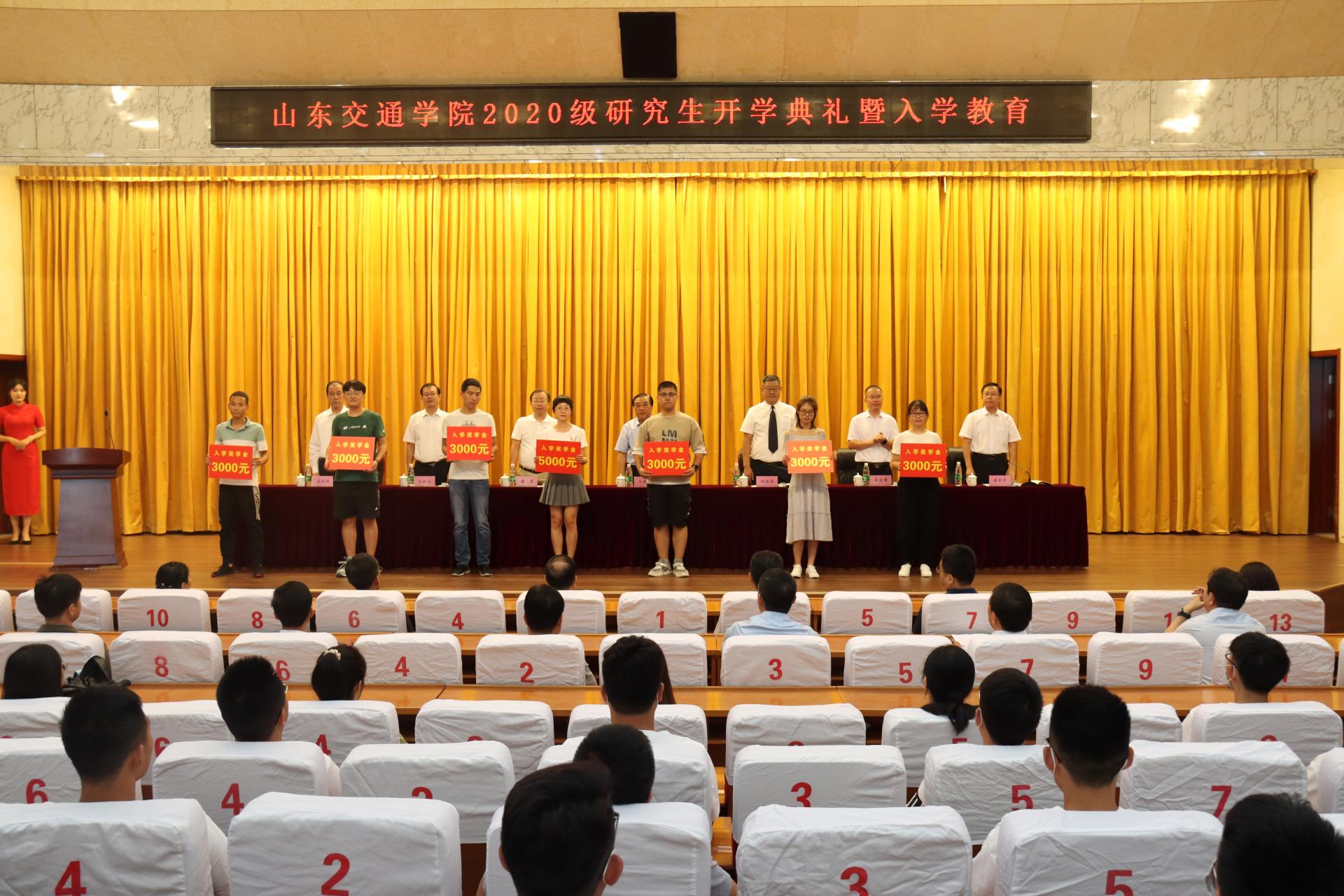 学校领导为获得2020级入学奖学金的研究生代表颁奖。