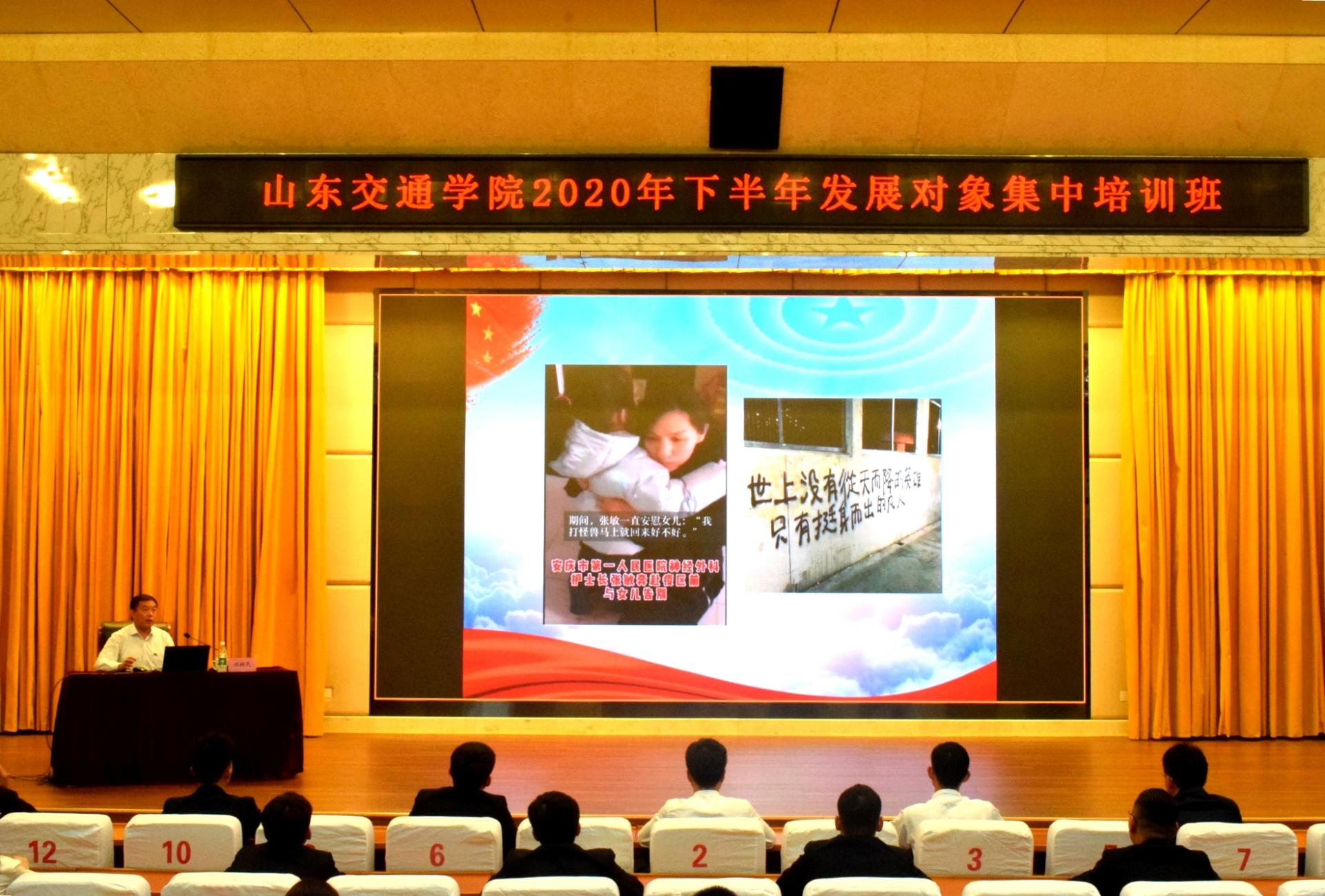 汽车工程学院分党委书记刘树民作了《同心克时艰,战疫显担当》的专题辅导报告,通过一幅幅生动的图片、一个个真实的事例,展现了全国各条战线的广大党员干部群众在抗击新冠肺炎疫情中的感人事迹,就新时代学生党员在抗击疫情时期如何体现先锋模范带头作用、强化新时代大学生党员担当作为精神进行了阐述。