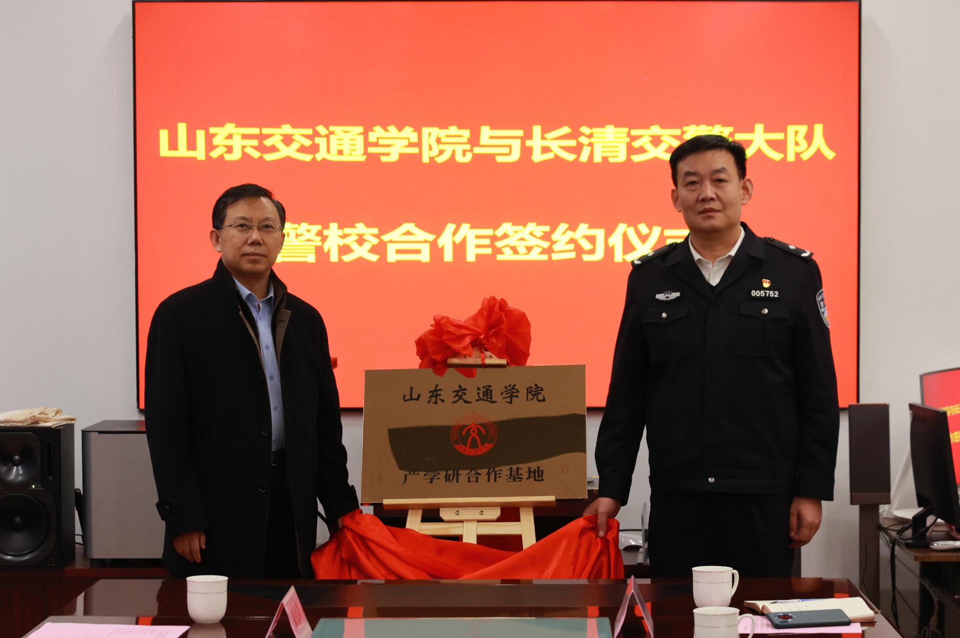 仪式上,姜华平与王君洲共同为警校合作基地揭牌,交通与物流工程学院相关负责人与长清区交警大队签署合作协议。