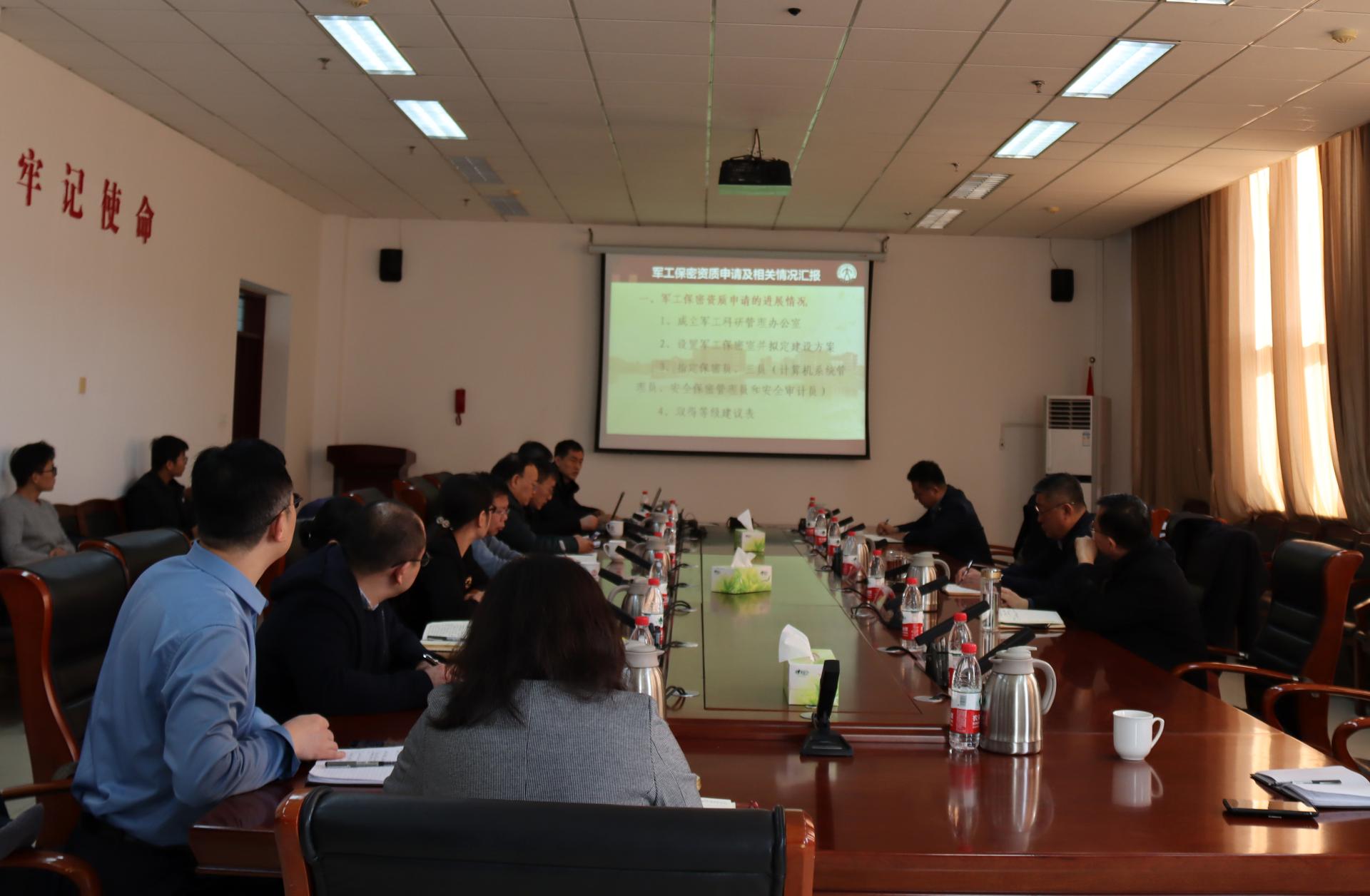 会议听取了科研处关于军工保密资格申请工作的进展情况、部门分工方案和下一步工作计划等相关事宜的汇报。