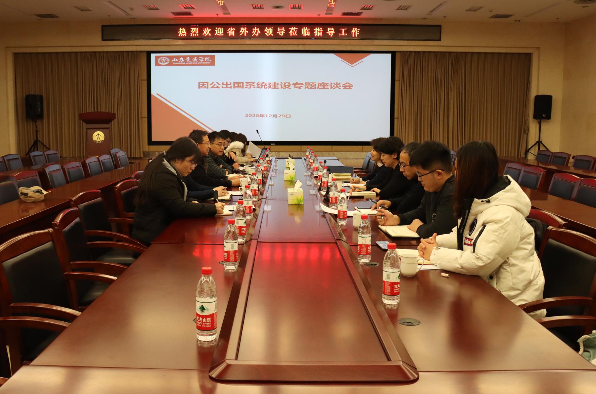 12月29日下午,山东省人民政府外事办公室因公出国管理处处长李研峰一行6人到我校长清校区调研外事系统建设情况并举行座谈会。学校党委委员、副院长姜华平出席活动。