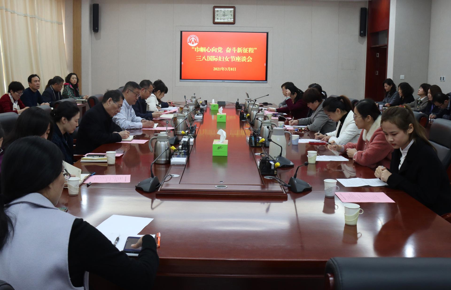 3月8日,学校在长清校区明德楼303会议室召开“巾帼心向党 奋斗新征程”三八国际妇女节座谈会,庆祝第111个三八国际妇女节。党委副书记、院长陈松岩,党委委员、副院长李贞涛,党委委员、党委宣传部部长周颜玲出席座谈会。座谈会由李贞涛主持。