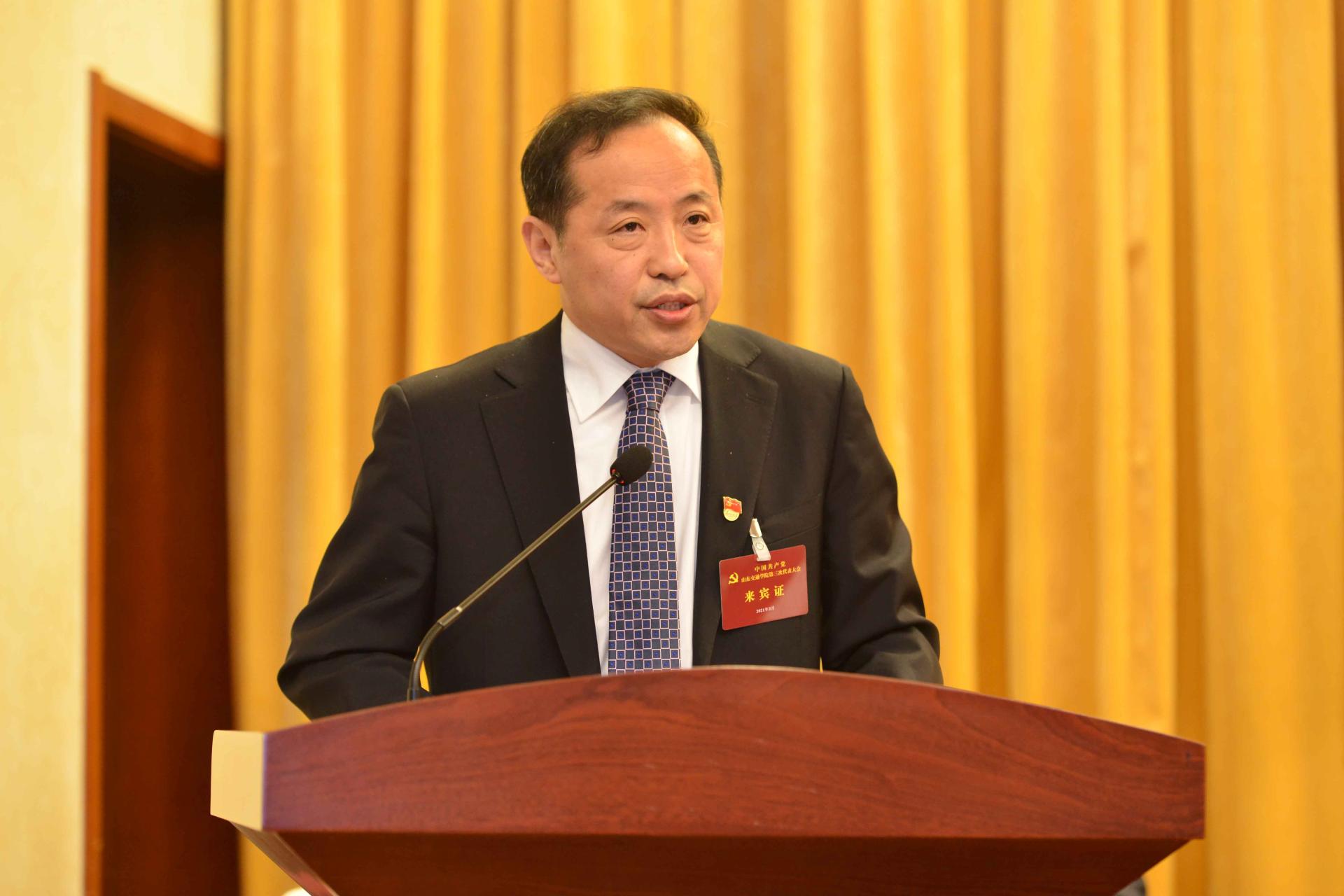 司家军代表省交通运输厅对大会的召开表示热烈祝贺。他表示,自学校第二次党代会召开以来,山东交通学院坚持科学发展、特色发展,积极服务交通运输行业发展,综合办学实力显著提升,社会影响力不断增强,已经成为一所专业布局优、教学质量高、办学特色鲜明、充满生机活力的高校。他相信这次大会一定能够开成一个统一思想谋发展的大会,一个振奋精神鼓干劲的大会,一个开拓创新谱新篇的大会。他代表省交通运输厅对即将产生的新一届党委提出三点要求:一要加强党的全面领导;二要更加突出行业特色;三要持续深化科教融合改革。