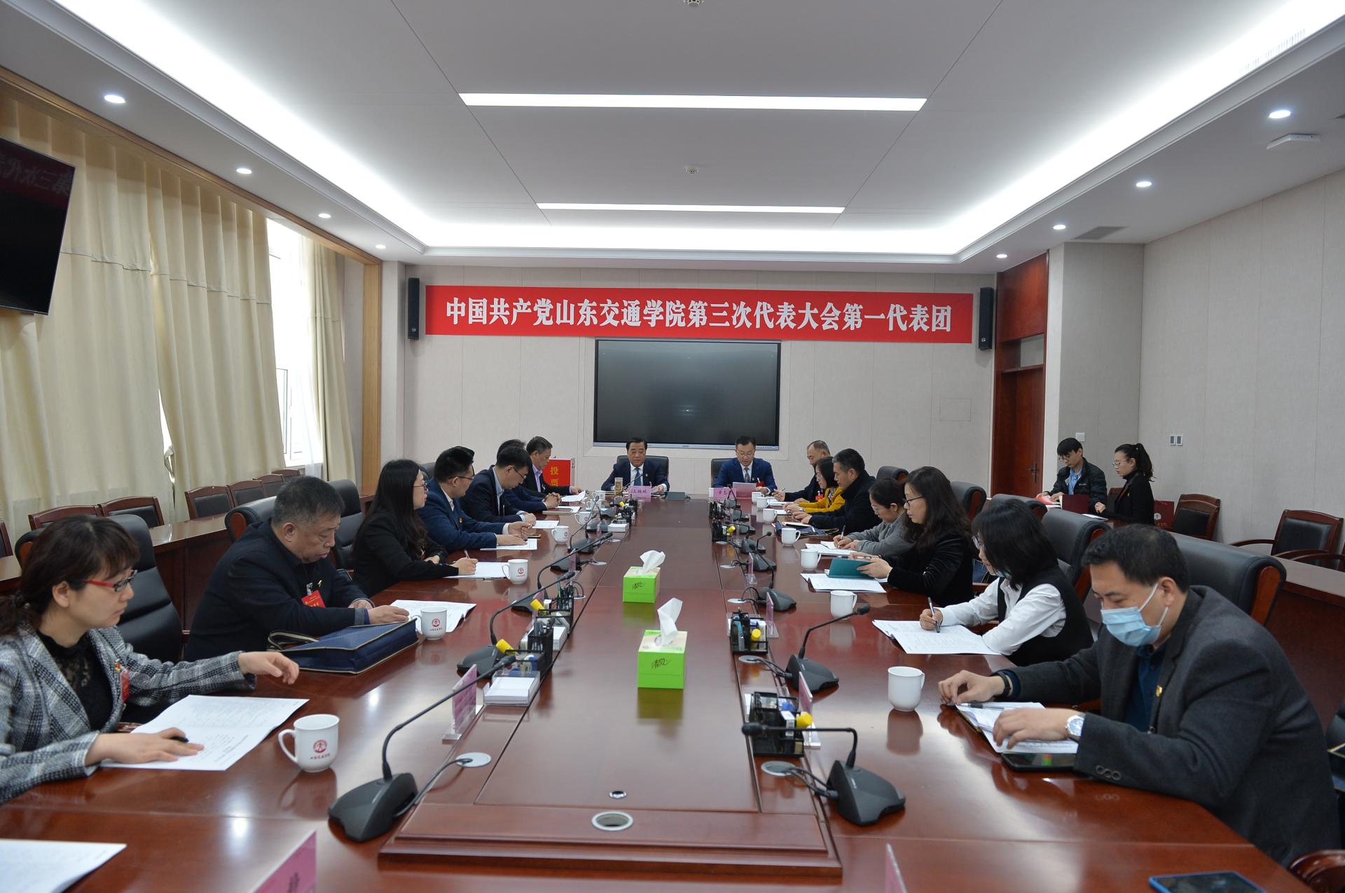 中国共产党山东交通学院第三次代表大会开幕式后,大会代表分为十一个代表团,分组审议讨论了党委书记王焕斌代表山东交通学院第二届委员会所作的《聚焦新使命 展现新作为 奋力开启高水平应用型交通大学建设新征程》的报告。