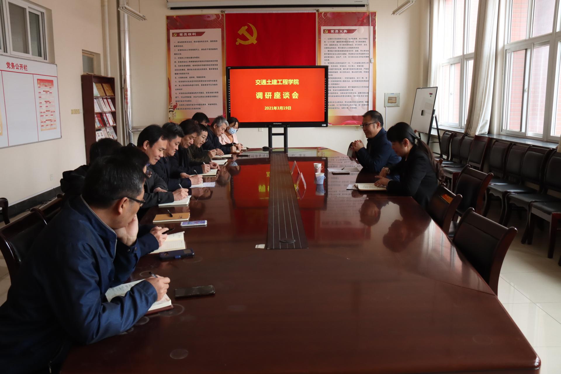 在交通土建工程学院,李贞涛与学院领导班子成员和教师代表进行了座谈交流,并强调指出,要紧紧围绕学校建成高水平应用型交通大学的目标任务,立足学校发展和师生利益,进一步做好学院各项工作。