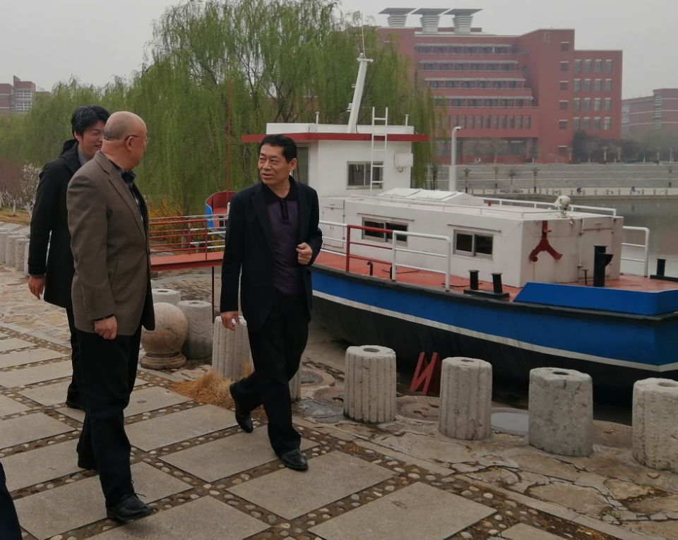王军在学校工会负责人陪同下,参观了“一飞冲天”“一路向东”“一鸣惊人”“一帆风顺”“一往直前”“一马当先”等景观。在“一帆风顺”608船舶景观前,王军听取了相关介绍并仔细阅读了景观文化诠释,对学校利用“红船精神”进行文化创意,提升景观文化内涵,传播红色文化给予高度评价。他说,2017年10月31日,党的十九大闭幕仅一周,习近平总书记就带领新一届中央政治局常委专程前往上海和浙江,瞻仰中共一大会址和嘉兴南湖红船。当年,爷爷王尽美和邓恩铭辗转千里从济南来到上海和嘉兴南湖的红船上参加了党的“一大”,躬身力行了以“开天辟地、敢为人先的首创精神,坚定理想、百折不挠的奋斗精神,立党为公、忠诚为民的奉献精神”为内涵的“红船精神”。