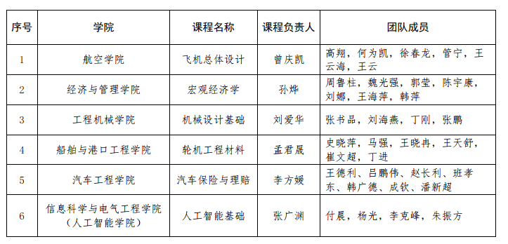 4月8日,山东省教育厅发布《关于2021年山东省普通本科教育课程思政示范课程、普通高等教育教学研究示范中心评审遴选结果的公示》,我校《飞机总体设计》《宏观经济学》《机械设计基础》《轮机工程材料》《汽车保险与理赔》和《人工智能基础》6门课程被评为“2021年山东省普通本科教育课程思政示范课程”。