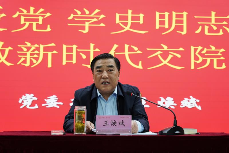 王焕斌以习近平总书记在党史学习教育动员大会上的重要讲话精神为出发点,强调开展党史学习教育“正当其时、十分必要”。他从牢记初心使命、推进历史伟业,坚定信仰信念、坚持和发展中国特色社会主义,推进党的自我革命、永葆党的生机活力等三个方面具体解释了为什么要学党史,教育引导青年学生要正确理解开展党史学习教育的“三个必然要求”,始终以踏实的态度、坚定的理念、昂扬的斗志投身全面建设社会主义现代化国家新征程。