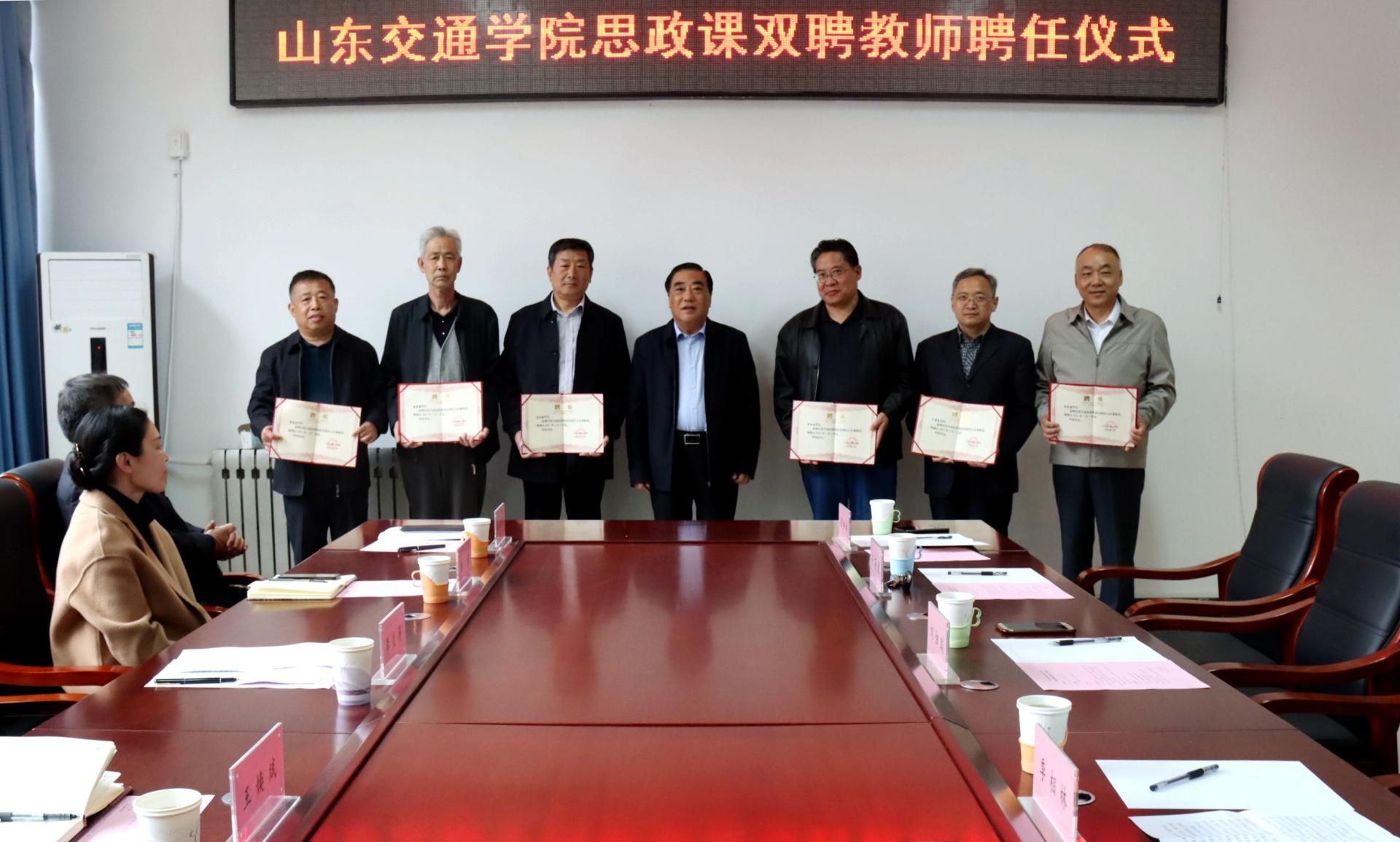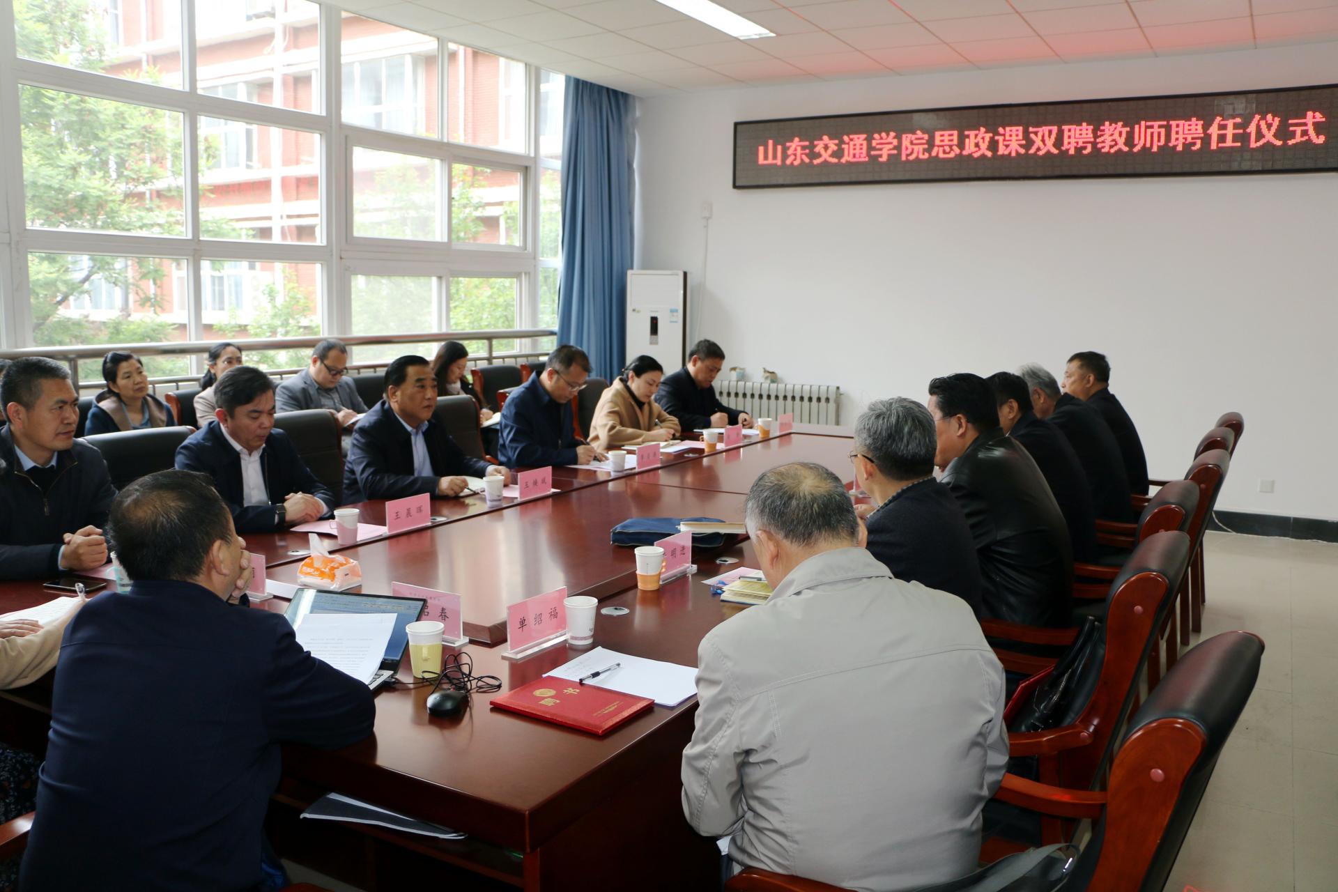 4月21日下午,学校在长清校区综合实验楼马克思主义学院会议室举行思政课双聘教师聘任仪式。党委书记王焕斌,党委副书记李贞涛,党委委员、党委办公室(学校办公室)主任、党委统战部部长王晨晖出席聘任仪式。仪式由马克思主义学院党总支书记主持。