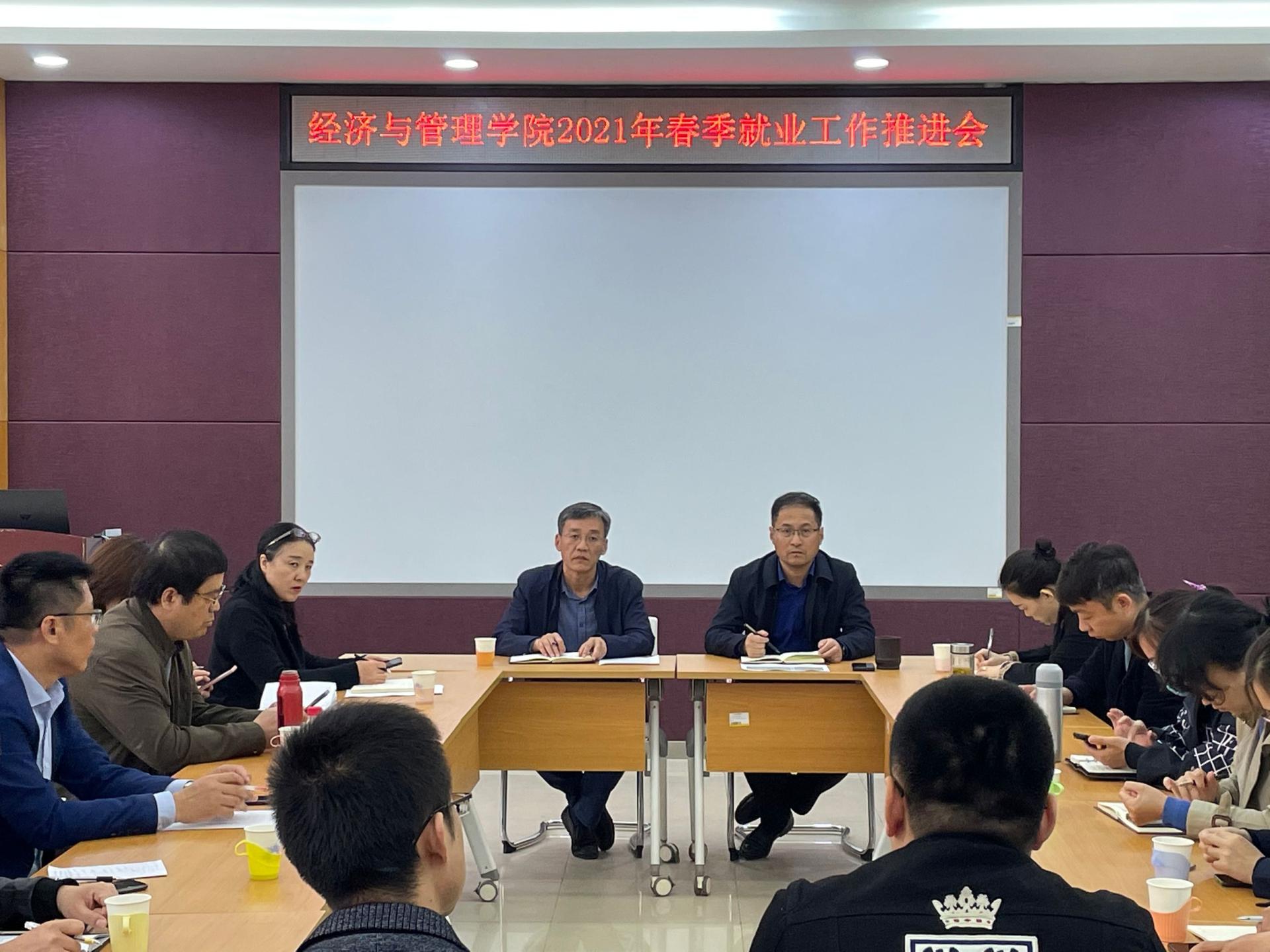 4月21日上午,经济与管理学院在长清校区一号教学楼1B104会议室举行2021年春季就业工作推进会。学校党委委员、副院长、经济与管理学院院长来逢波出席会议并讲话。