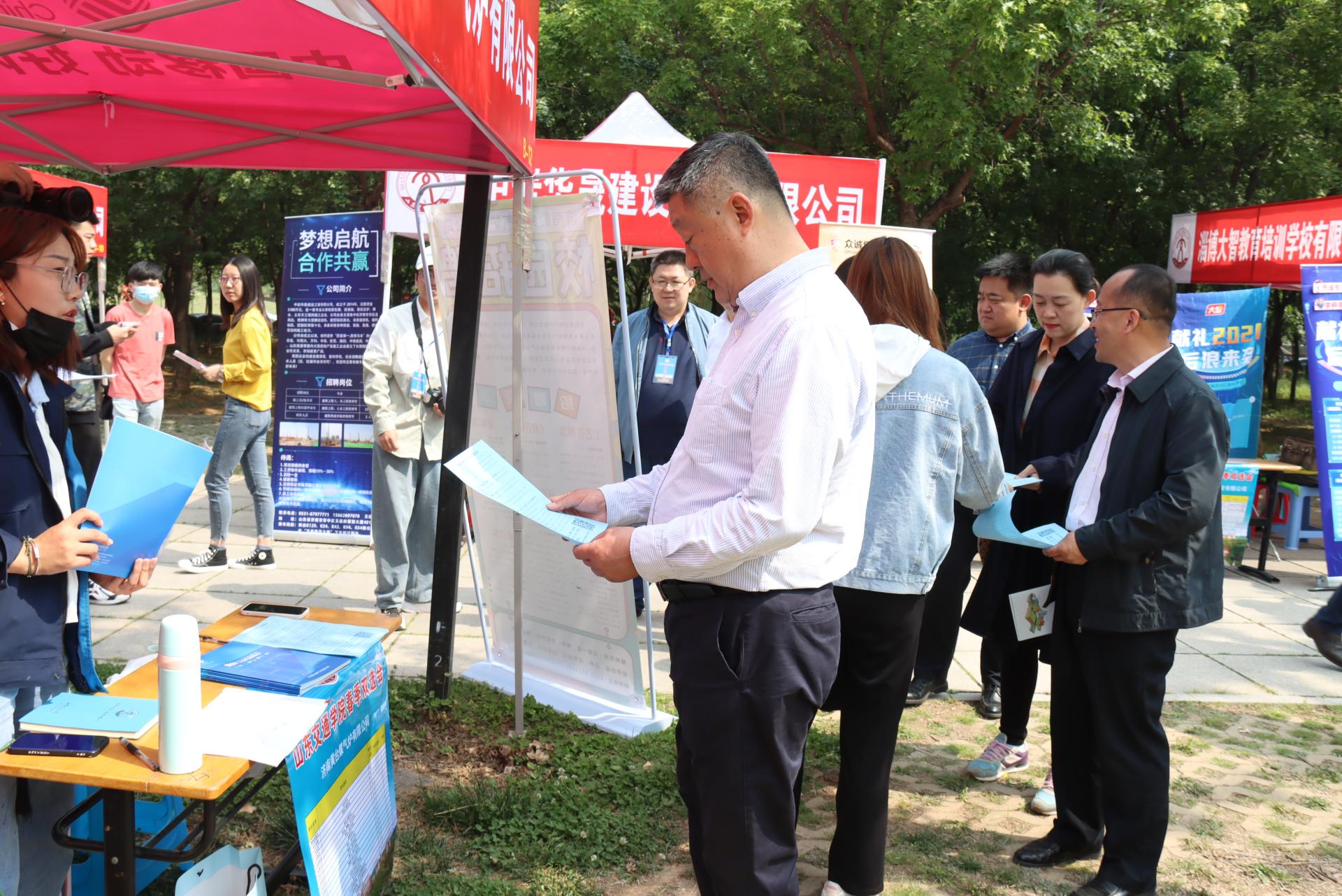 5月12日上午,学校2021届毕业生春季双选会在长清校区文体馆北广场顺利开展。党委副书记、院长陈松岩到招聘现场指导工作。