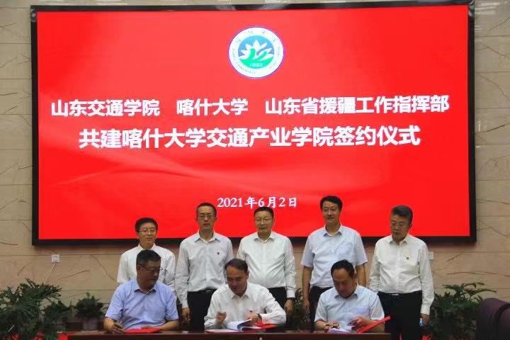 为贯彻落实中央第三次新疆工作座谈会精神,进一步深化、拓展和创新对口援疆工作,6月1日至4日,学校党委副书记、院长陈松岩,党委委员、副院长张化祥一行赴喀什大学对接洽谈合作共建事宜,签署了合作框架协议。签约仪式在喀什大学新泉校区行政楼一楼会议室举行,山东省援疆工作指挥部党委书记张成伟,新疆自治区教育厅党组副书记、副厅长、喀什大学党委书记薛继海,喀什大学党委副书记、校长亚克夫·吐尔地,自治区人民政府督学孙红新,喀什大学党委常委、副校长罗浩波,喀什大学党委常委、副校长赵斌出席签约仪式。