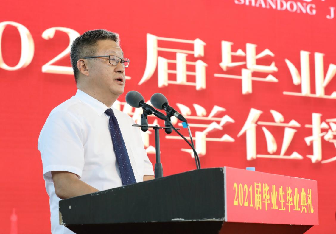 6月23日下午,学校2021届毕业生毕业典礼暨学位授予仪式在长清校区体育馆举行。党委书记王焕斌,党委副书记、院长陈松岩,党委副书记李贞涛,党委委员、纪委书记、监察专员刘世杰,党委委员、副院长曲同军、姜华平、来逢波、张化祥,党委委员、党委办公室(学校办公室)主任、党委统战部部长王晨晖出席典礼。典礼由李贞涛主持。