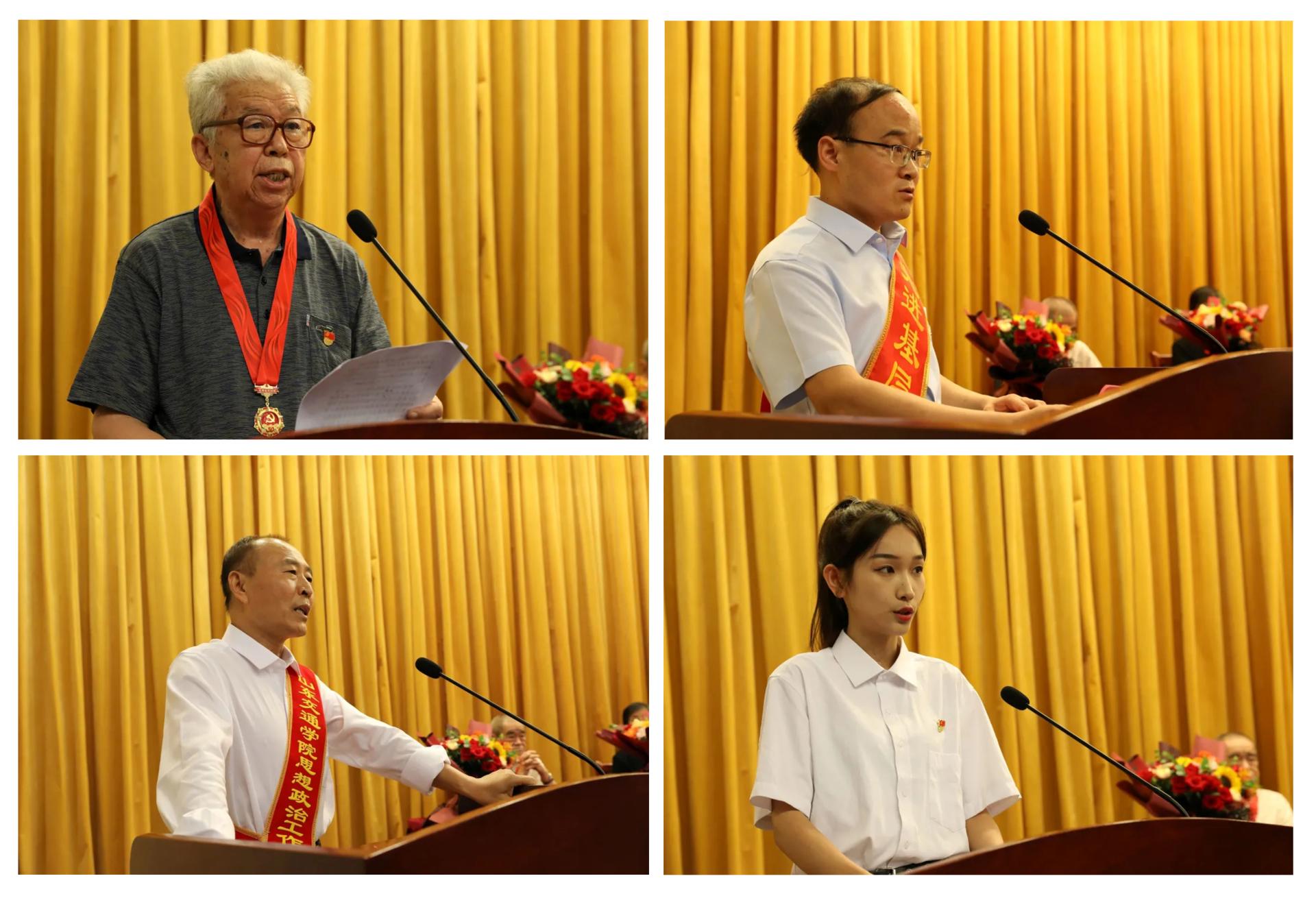 “光荣在党50年”党员代表李明山、先进基层党组织代表朱振方、思想政治工作先进个人代表曹云升、新发展党员代表吴瑜瑾依次作了交流发言。