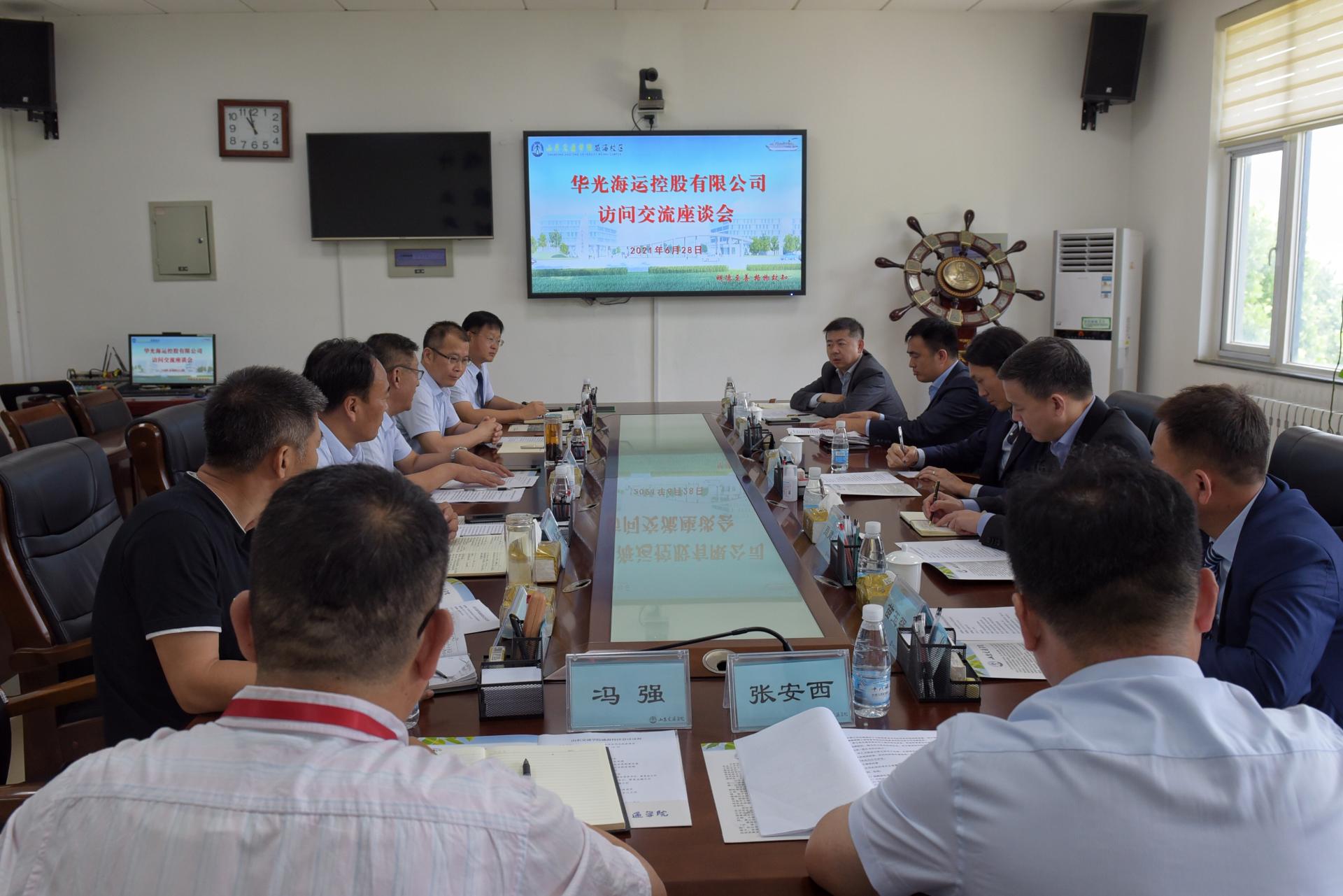6月28日,香港华光海运控股有限公司董事长赵式庆带领公司高层一行在东弘国际海事服务集团董事长姜明旸的陪同下,到我校威海校区访问交流。学校党委副书记、院长陈松岩,党委副书记李贞涛会见客人并出席座谈会,李贞涛主持会议。