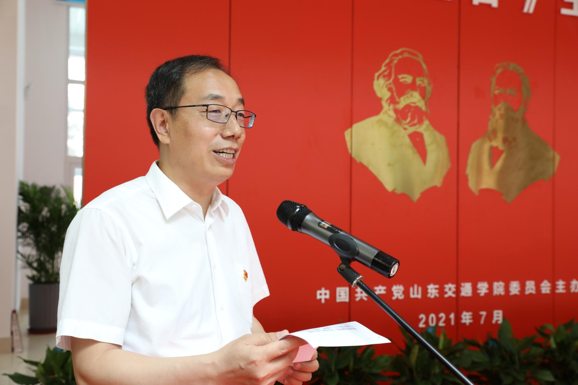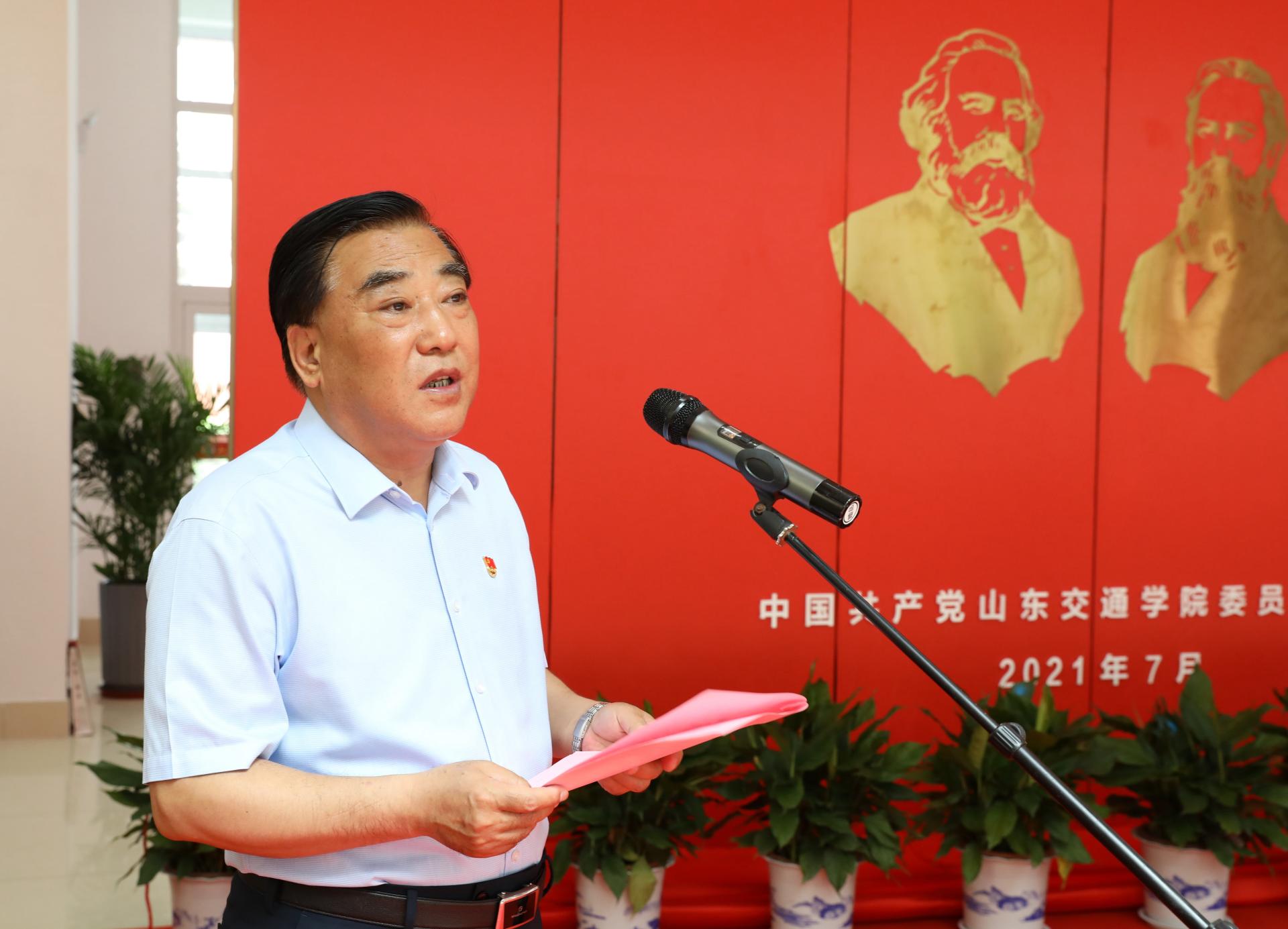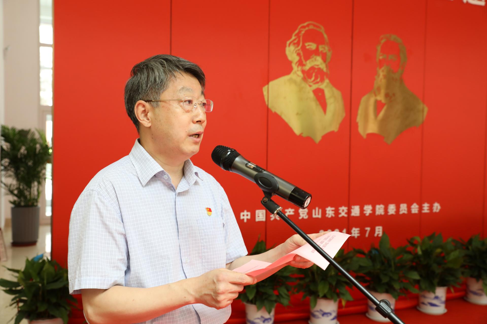 冯继康发表致辞。他指出,《共产党宣言》是马克思主义诞生的标志性著作,不仅是人类思想殿堂最璀璨夺目的瑰宝,而且是一代又一代共产党人所赖以滋养的马克思主义经典著作。他强调,在建党百年之际,山东交通学院及时整理这批非常珍贵、完整的藏品,全面直观展示出马克思主义全球传播以及马克思主义中国化的历史进程,为我省教育领域开展党史学习教育提供了鲜活教材。他要求,要保护好这批红色资源,建成特色馆藏文化的高地;要研究好这批红色资源,建成马克思主义理论研究的高地;要利用好这批红色资源,建成全省高校立德树人的高地。