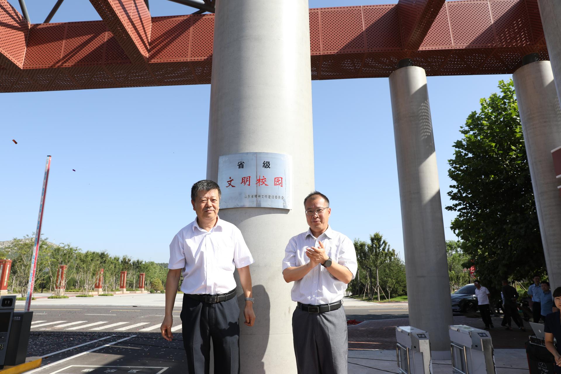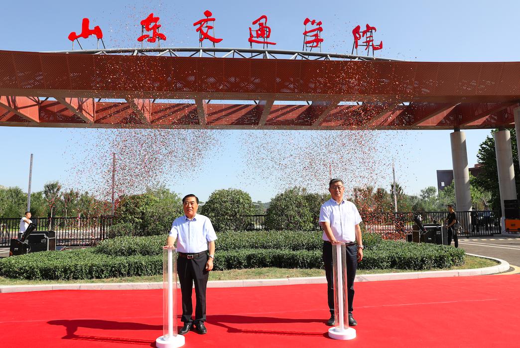 党委书记王焕斌,党委副书记、院长陈松岩共同按下长清校区南大门开启按钮。