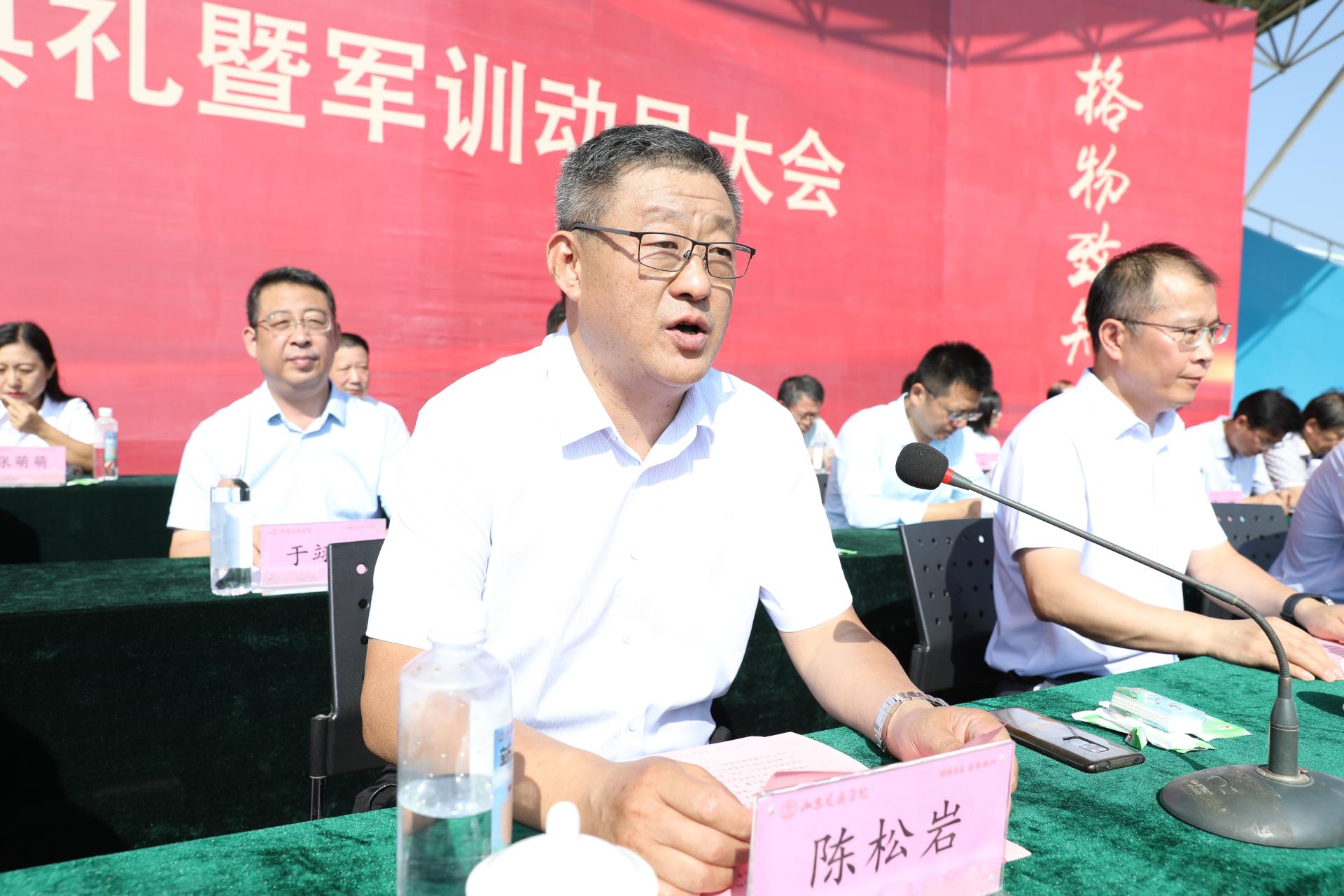 党委副书记、院长陈松岩作总结讲话,深情寄语2021级新生。他代表学校全体师生员工,向7500余名2021级新同学的到来表示热烈欢迎,向参加承训的中国人民解放军65056部队和军魂连全体教官致以崇高敬意,向全体教师致以节日问候。他指出,山东交通学院是一所历史底蕴深厚的大学,是一所办学特色鲜明的大学,更是一所发展前景广阔的大学。加入交院大家庭,要从仔细品味交院内涵开始,了解交院办学的光辉历史和永不褪色的初心使命,感受学校深厚的底蕴和鲜明的特色,追寻交院人代代相传的精神特质和深深内化的价值追求。在即将开启人生新旅程之际,他对全体2021级新生提出殷切希望:一是坚定理想信念,做一个有志气的新时代青年;二是锤炼品德修为,做一个有骨气的新时代青年;三是练就过硬本领,做一个有底气的新时代青年。最后,他勉励同学们珍惜韶华,矢志新奋斗,彰显新担当,无畏无惧,勇攀高峰,奋力谱写新时代的青春华章,创造属于自己的人生精彩。