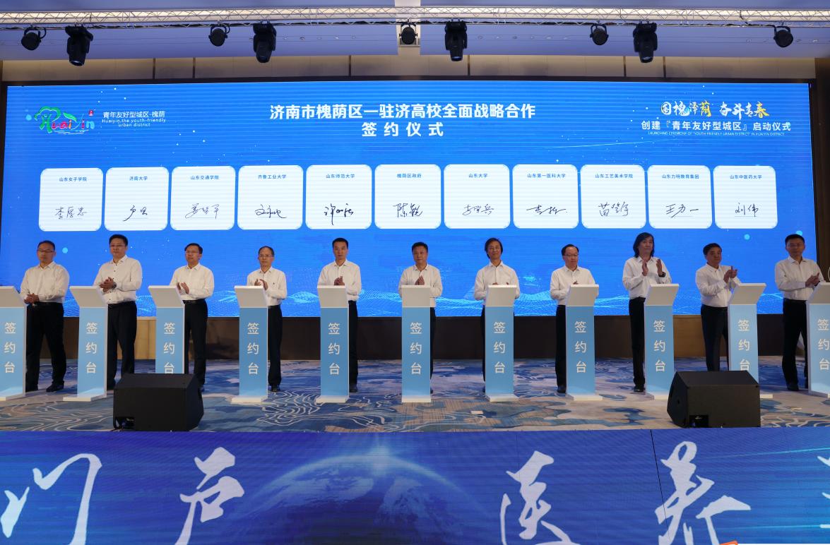 启动仪式上,姜华平与其他与会领导共同启动“槐荫青年友好型城区”Logo,并代表学校与槐荫区签署了全面战略合作协议。作为坐落在济南市的工科院校,学校将全面加强与槐荫区在教育、科研等方面的合作交流,不断提升学校服务山东经济社会发展的能力,实现校地双方互惠共赢。