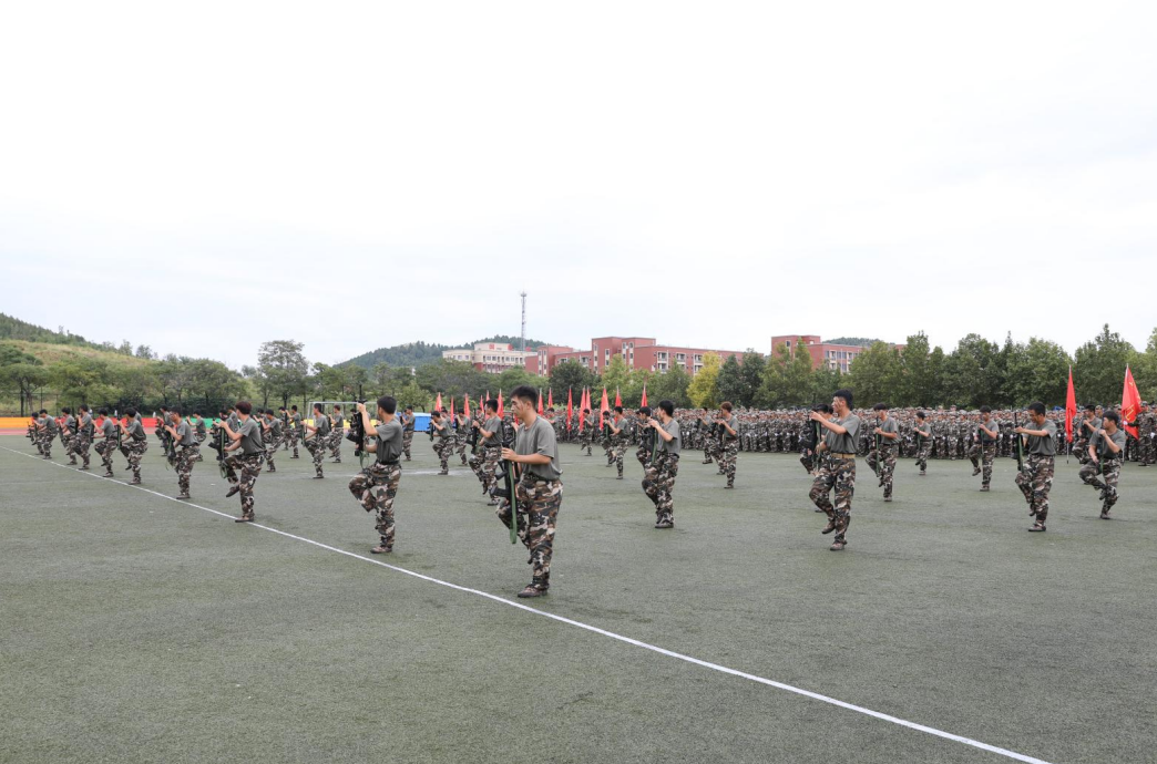 学校有关职能部门、各二级学院主要负责同志、承训部队教官、参训辅导员及全体2021级新生参加汇报表演。