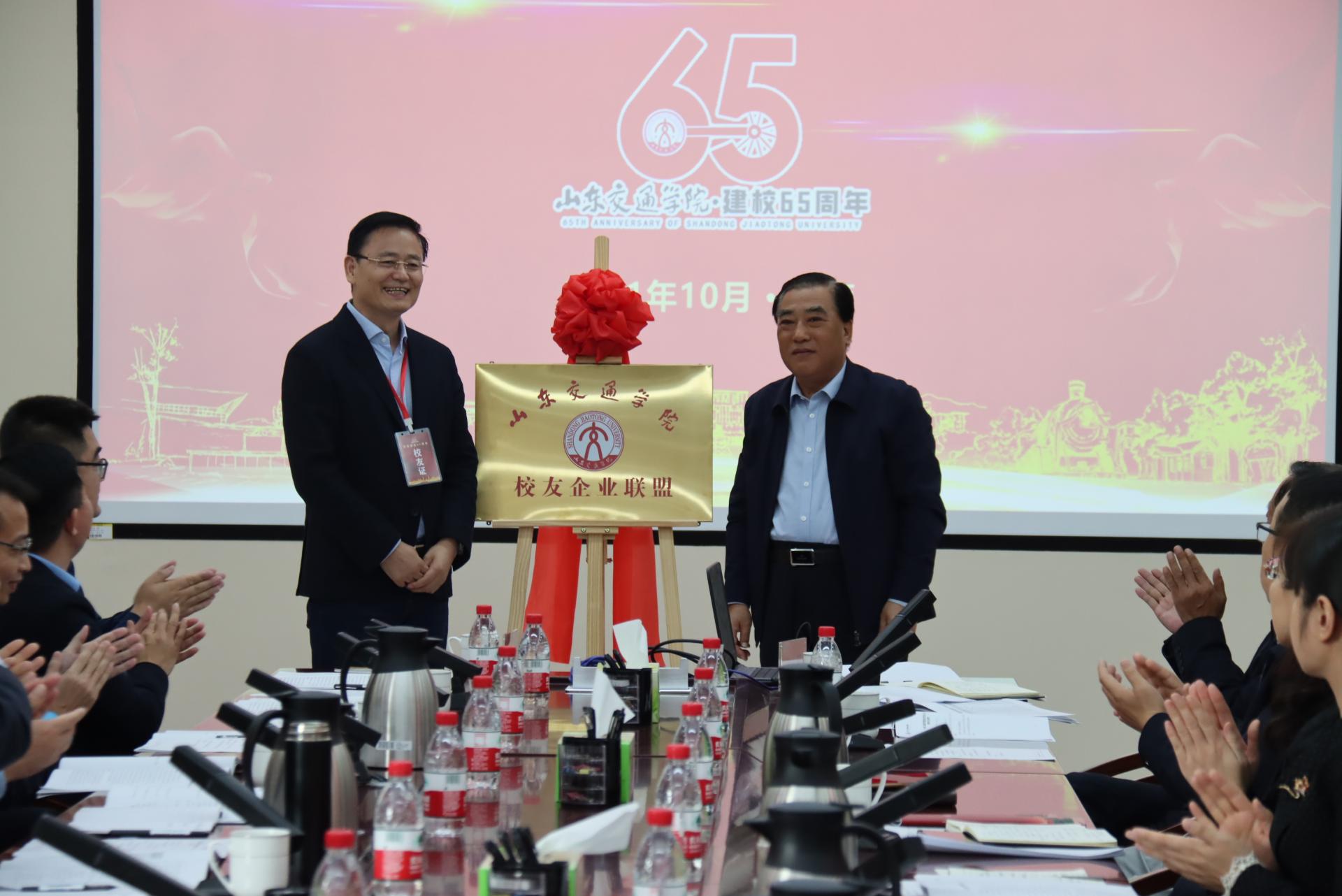 王焕斌、刘卫峰共同为山东交通学院校友企业联盟揭牌。