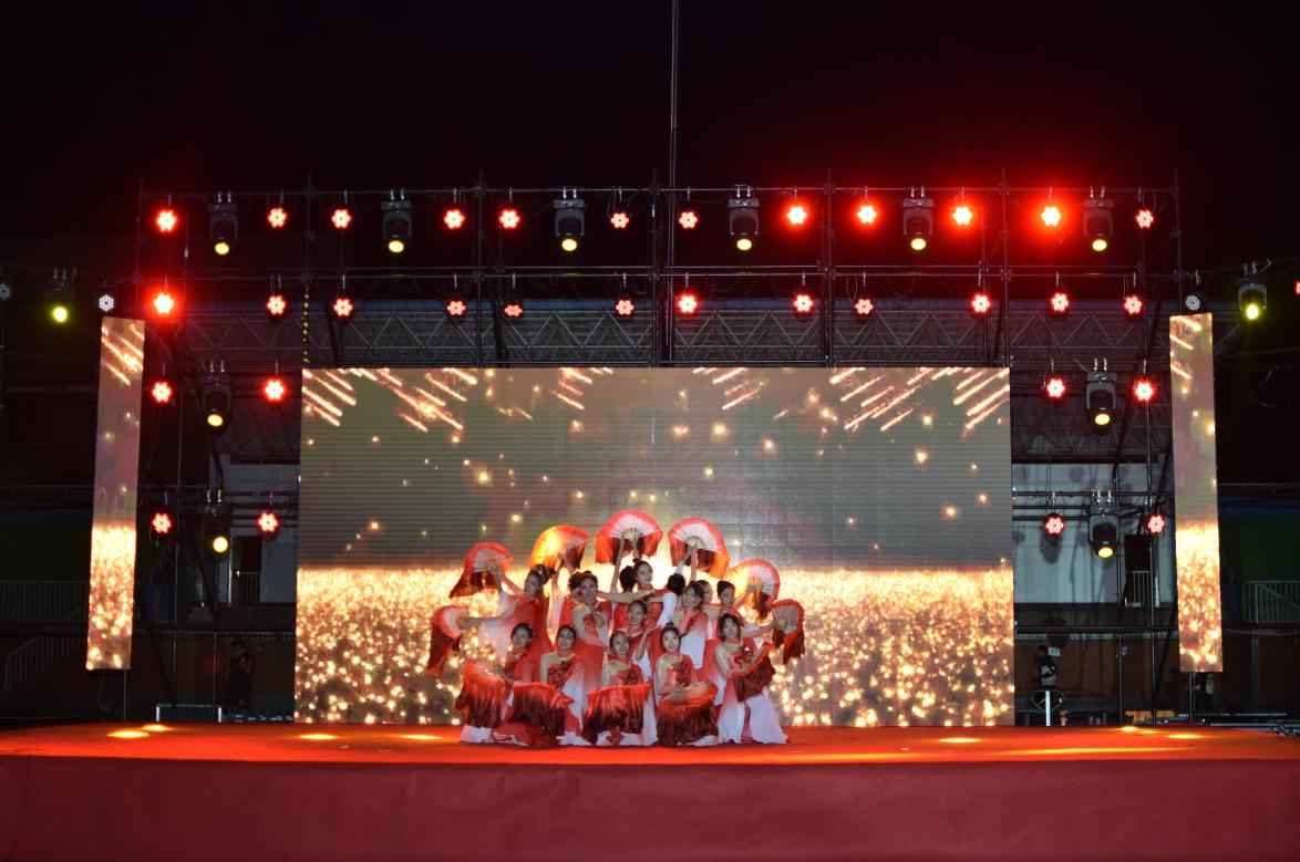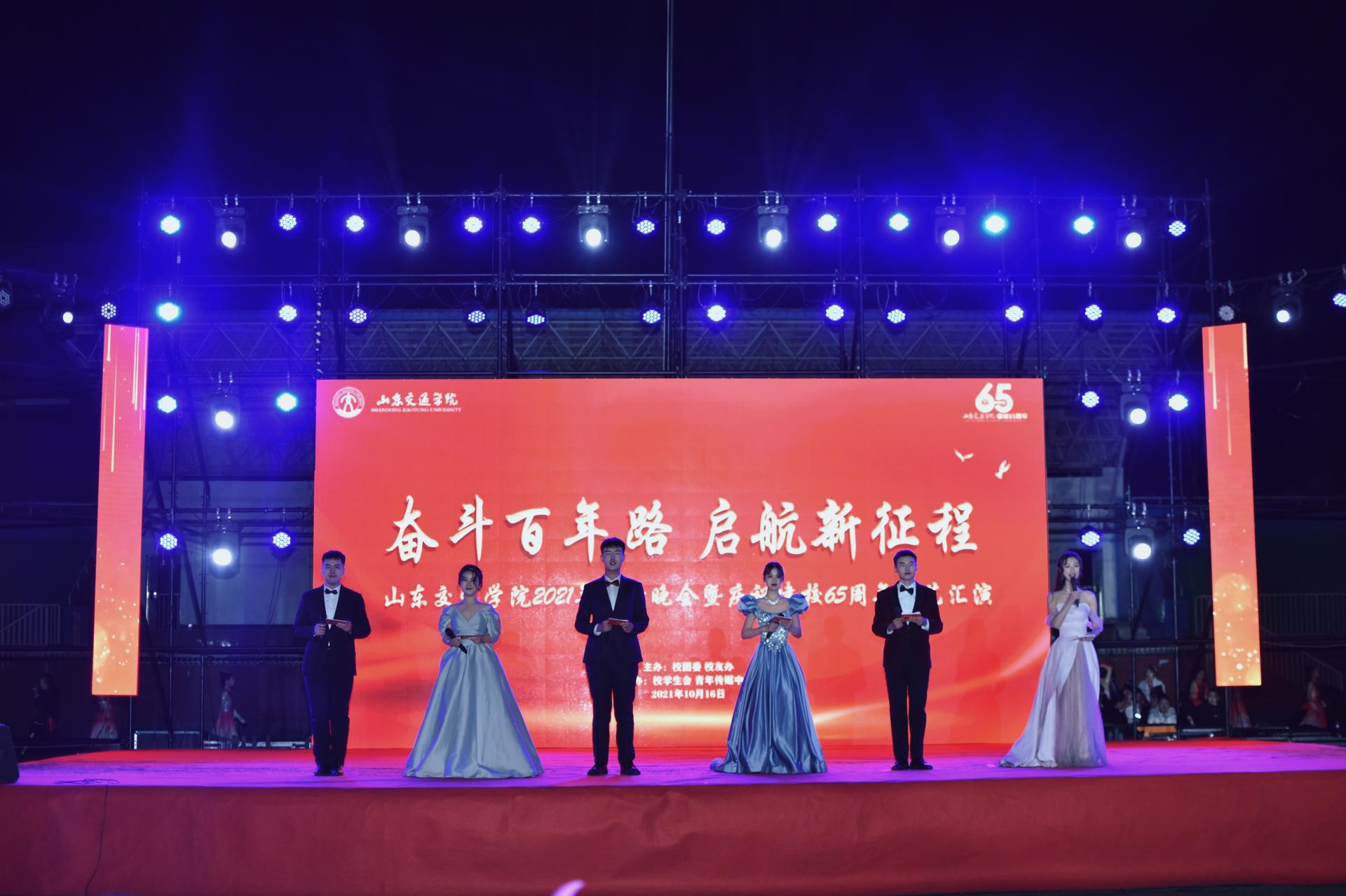 10月16日晚,学校在长清校区体育场举办“奋斗百年路 启航新征程”2021年迎新晚会暨庆祝建校65周年文艺汇演。党委委员、副院长来逢波出席活动。