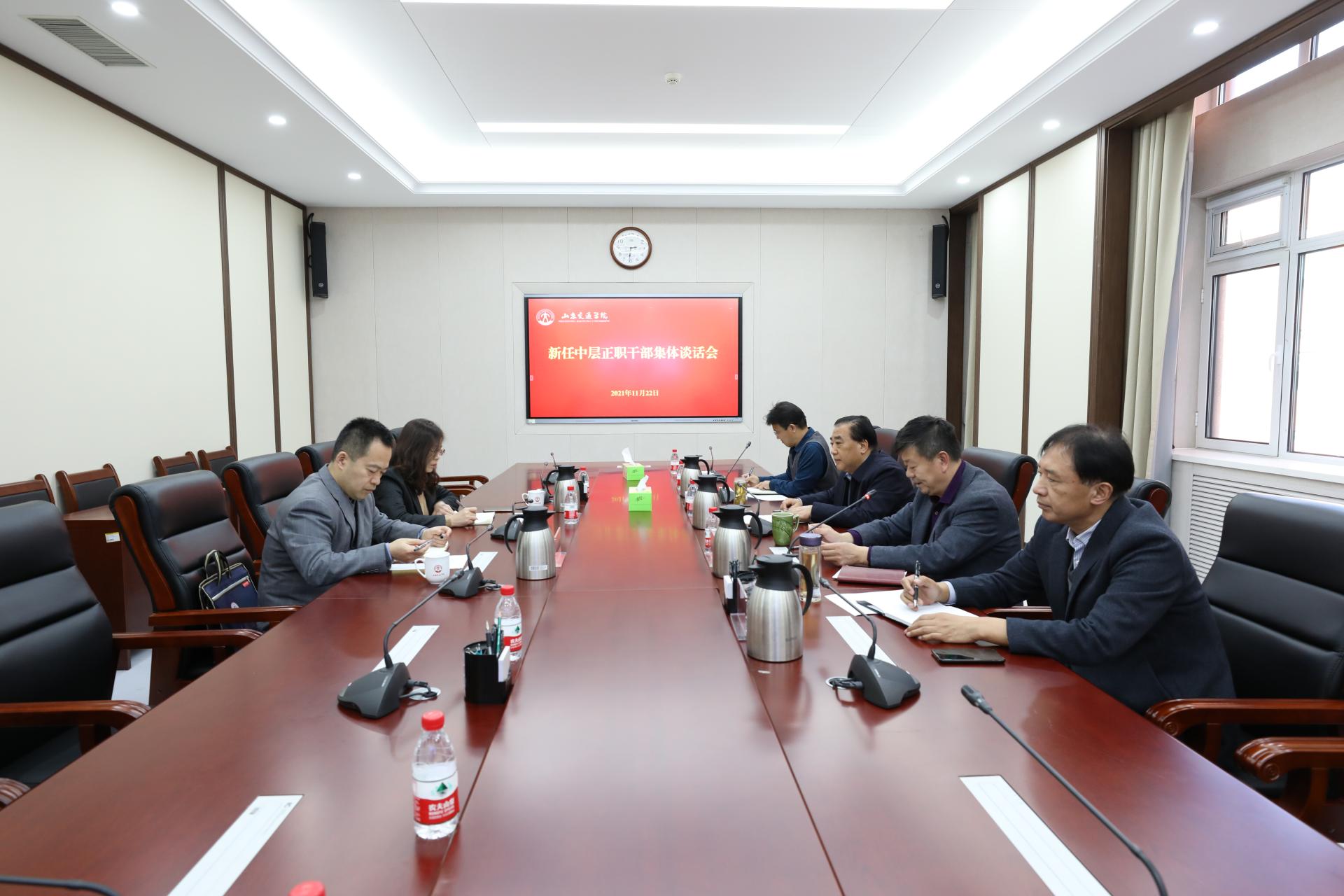 11月22日下午,学校在长清校区明德楼302会议室召开新任中层正职干部集体谈话会。党委书记王焕斌,党委委员、纪委书记、监察专员刘世杰,党委委员、党委组织部部长田杰昌出席会议。会议由田杰昌主持。