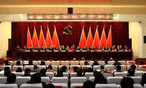 学术报告厅内红旗鲜艳,党徽闪耀,气氛庄严热烈。主席台上方悬挂着“中国共产党山东交通学院第二次代表大会”的会标,后幕正中是镰刀和锤头组成的党徽,10面鲜艳的红旗分列两侧。会场后方悬挂着“凝心聚力 改革创新 为建设特色鲜明的高水平应用型大学而努力奋斗”的醒目横幅。
