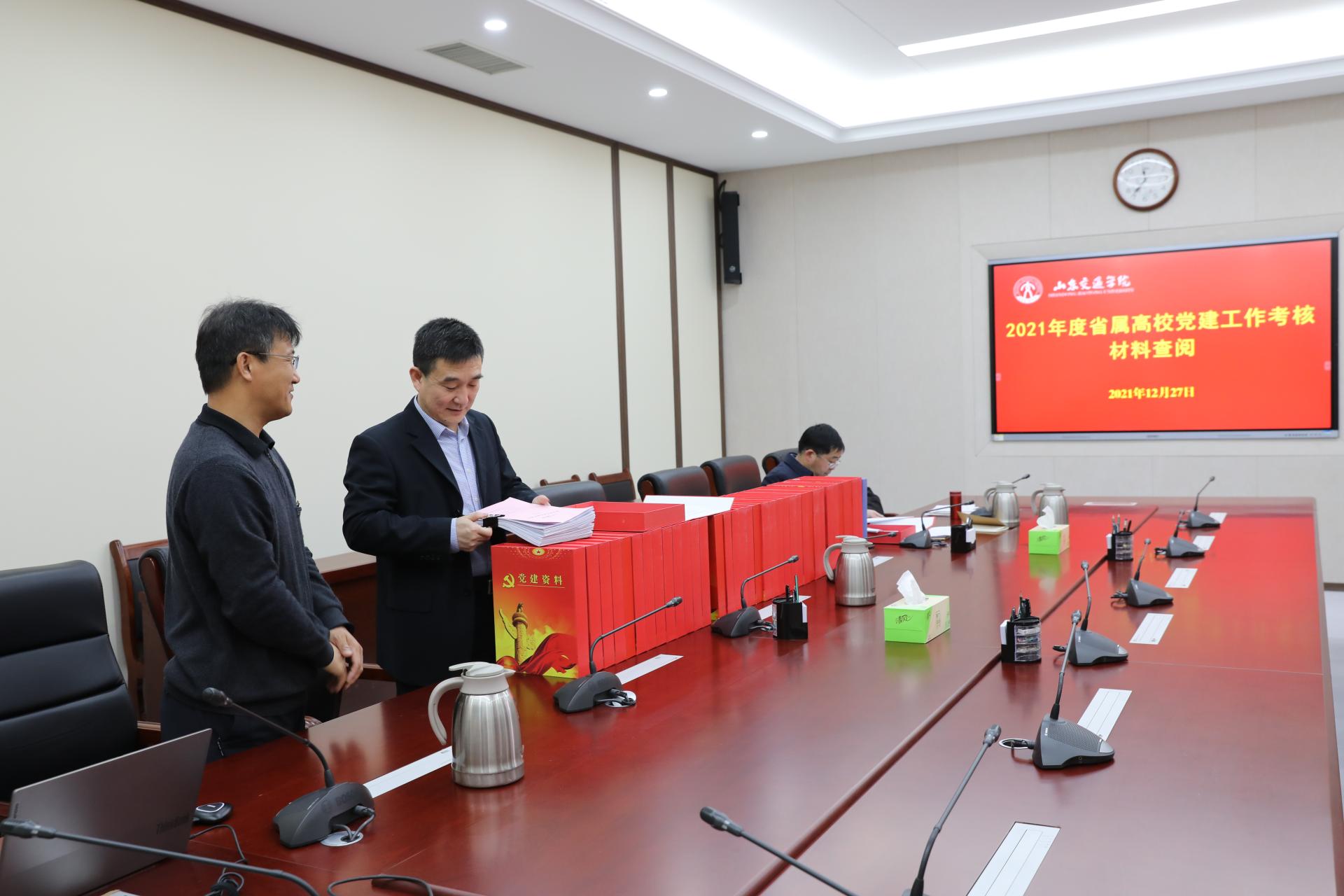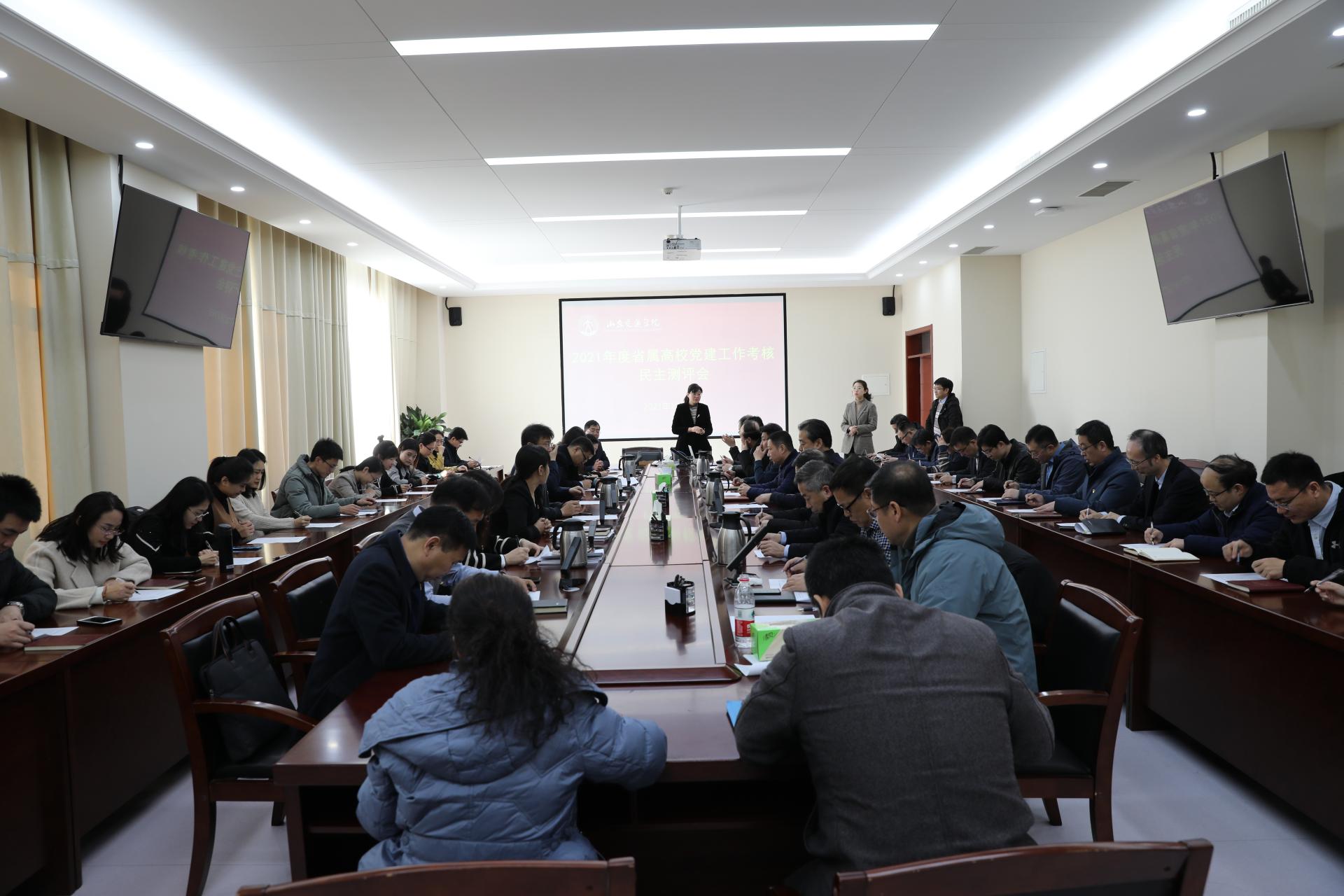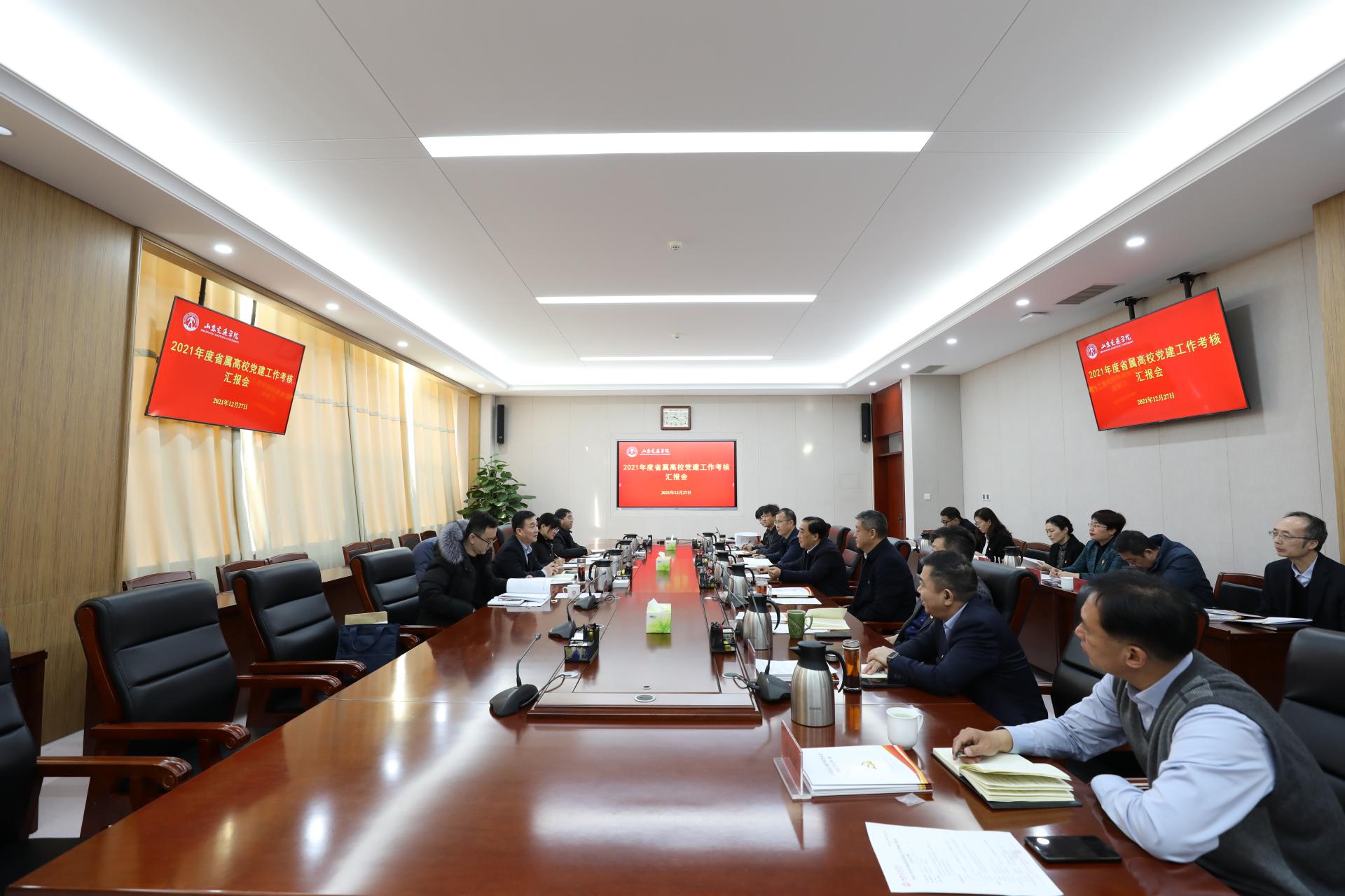 12月27日,由省教育厅(省委教育工委)学校组织处处长孙启高任组长的山东省高校党建工作考核组,来校考核2021年度党建工作。学校党委书记王焕斌,党委副书记、院长陈松岩,党委副书记李贞涛,党委委员、纪委书记、监察专员刘世杰,党委委员、党委组织部部长田杰昌,党委委员、党委办公室(学校办公室)主任、党委统战部部长王晨晖,党委委员、党委宣传部部长周颜玲参加现场考核汇报会。