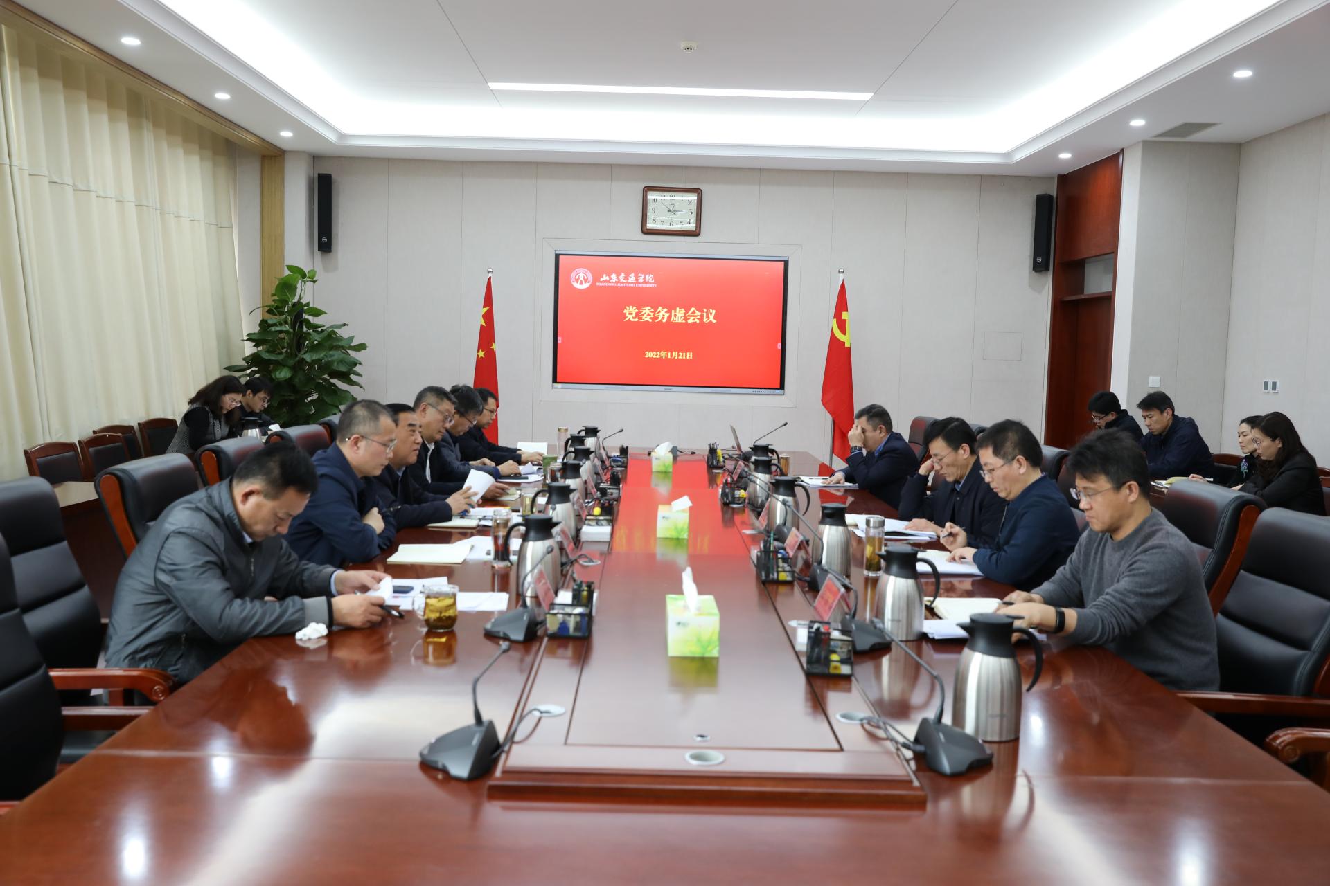 1月21日下午,学校在长清校区明德楼303会议室召开2022年党委领导班子工作务虚会。学校党委领导班子成员出席。会议由党委书记王焕斌主持。